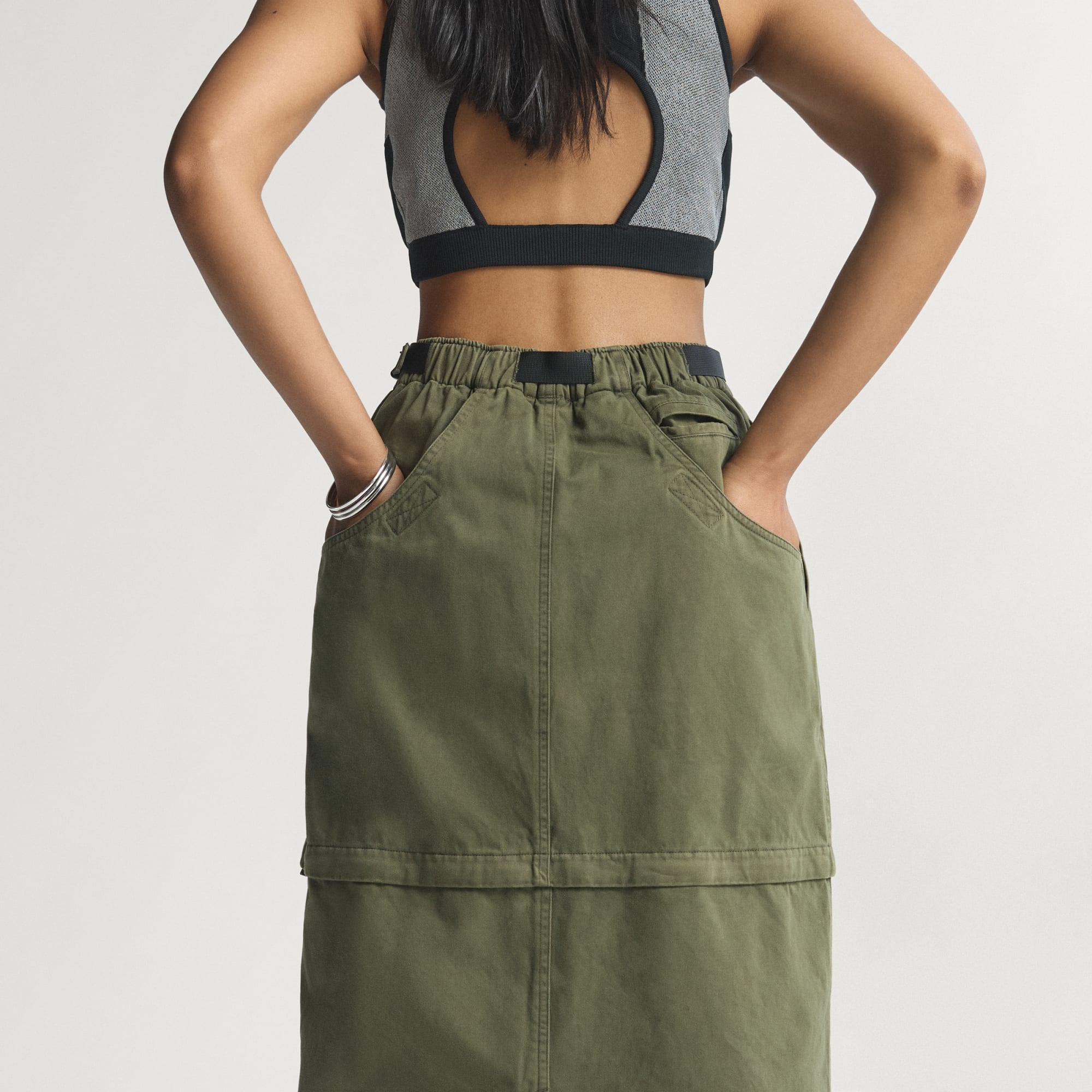 The fabric, the belt, and the numerous pockets are all high quality, and the creative design allowing you to switch between a short and long skirt is such a great idea. I had high hopes until I actually tried it on.