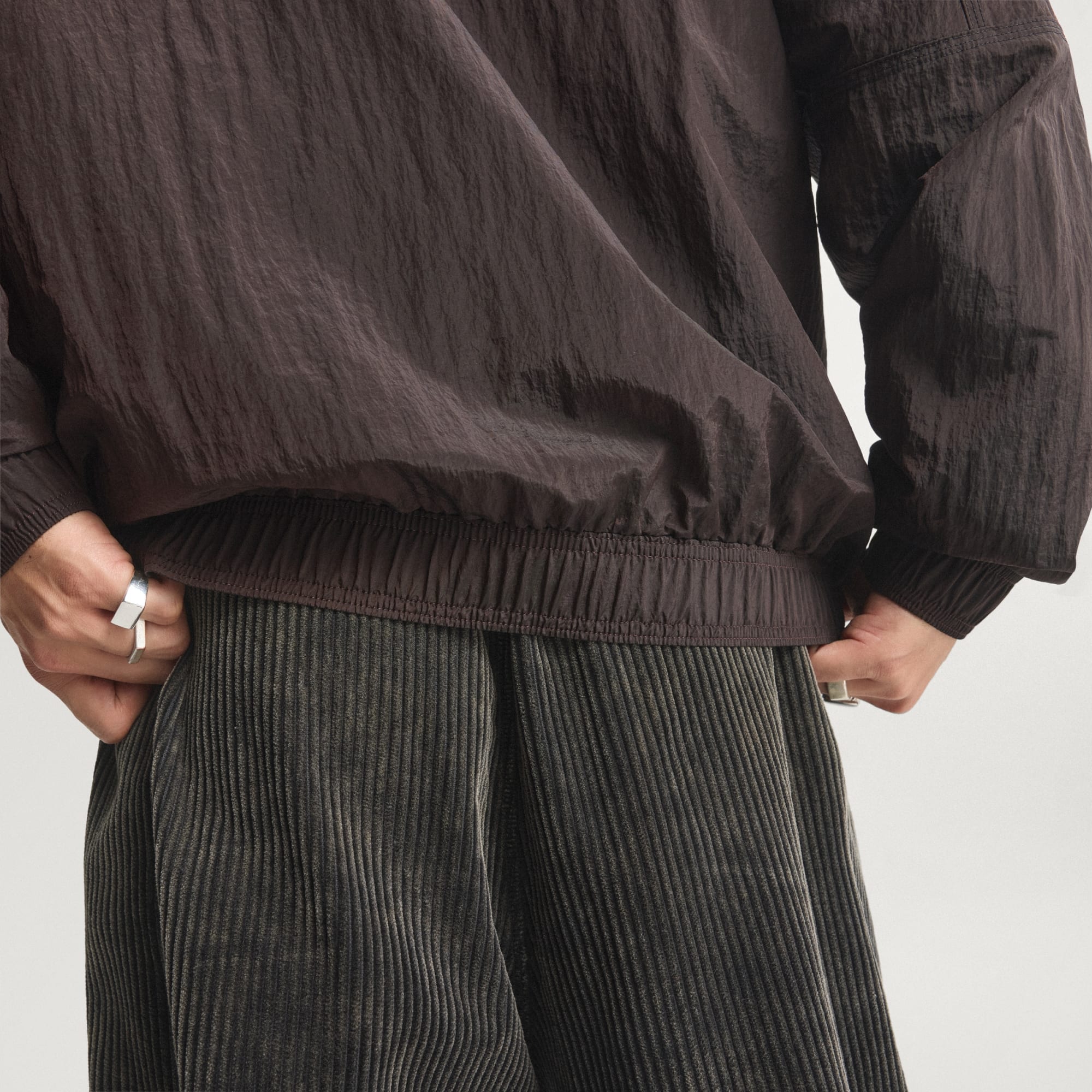 - Ribbed cuffs and hem