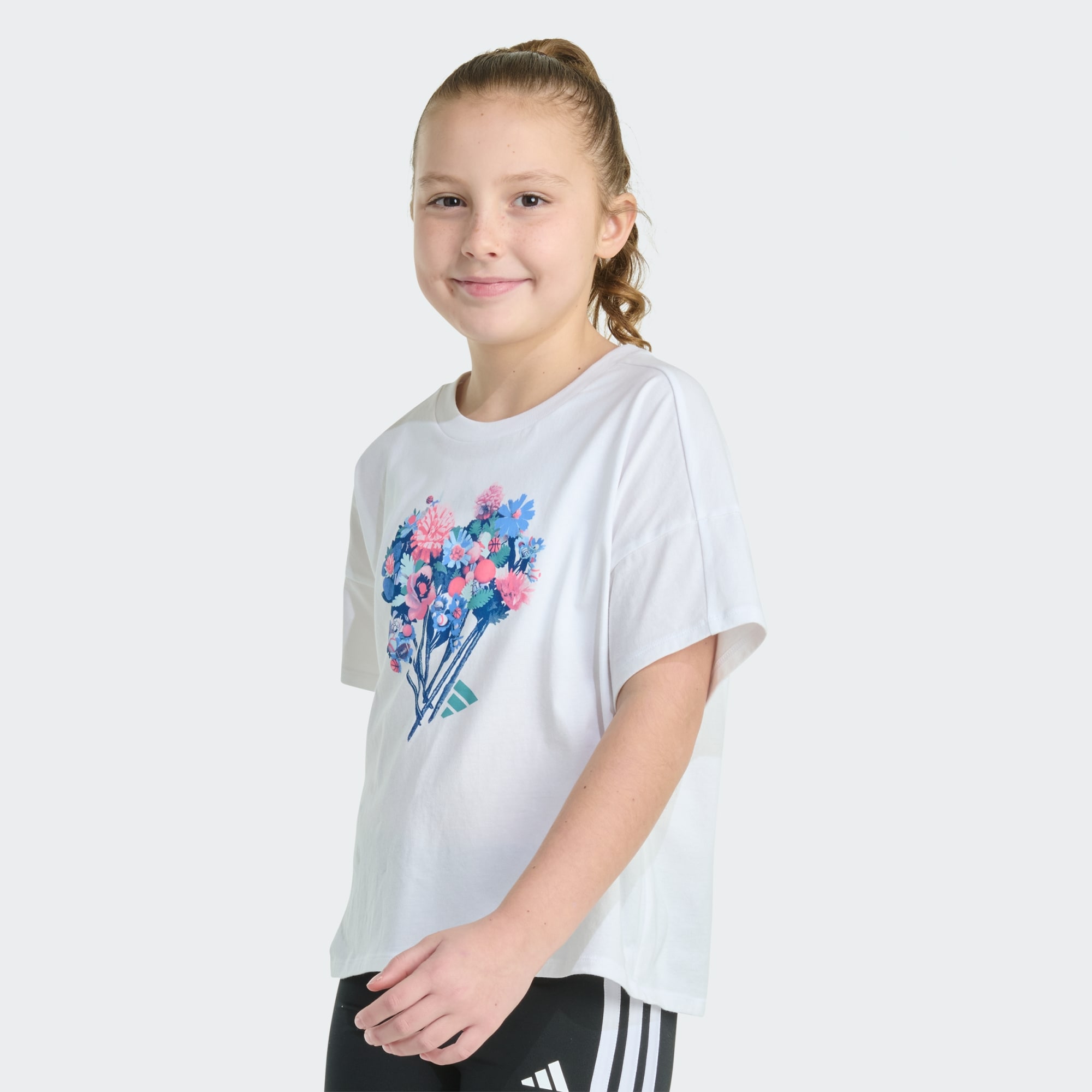 Your child's day just got a whole lot brighter with the adidas Short Sleeve Drop Shoulder Tee. Designed for endless adventures, this tee offers a blend of comfort and style. Crafted from soft breathable material, it provides a gentle touch against the skin, and its loose fit is suitable for juniors who love to move. The rib-knit crewneck offers a snug fit, while the drop shoulder design gives it a trendy, laid-back look that pairs effortlessly with their outfits. You will appreciate the tee's durability and easy care, thanks to its machine-washable nature. The standout feature of this piece is the adidas logo screen print, adorned with playful floral elements, adding a touch of fun and flair to your child’s wardrobe.