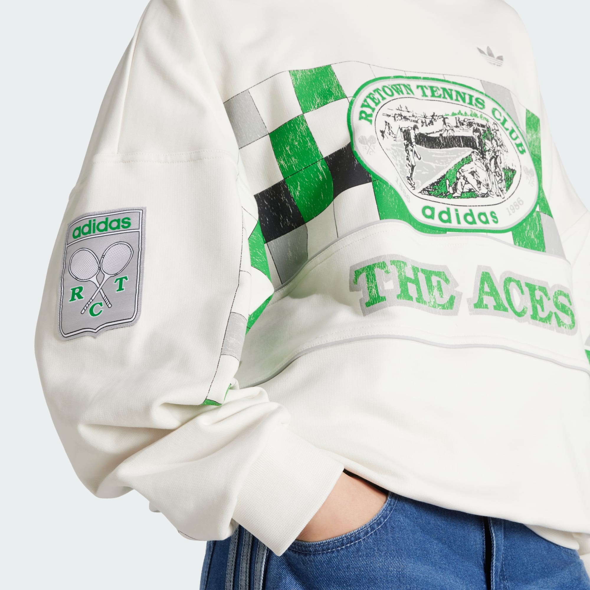 A fashionably oversized top inspired by vintage tennis apparel.