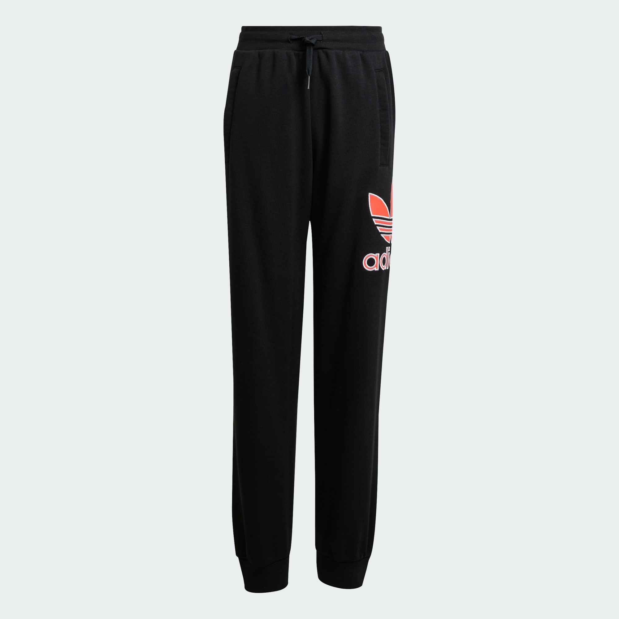 These juniors' adidas sweat pants are all about bold style and casual comfort. The loose shape and soft cotton fabric keep you cozy on laid-back days while a large Trefoil logo on one leg adds '90s-inspired attitude. Pair them with a graphic tee and your favorite kicks for an outfit that's equal parts retro and modern.
