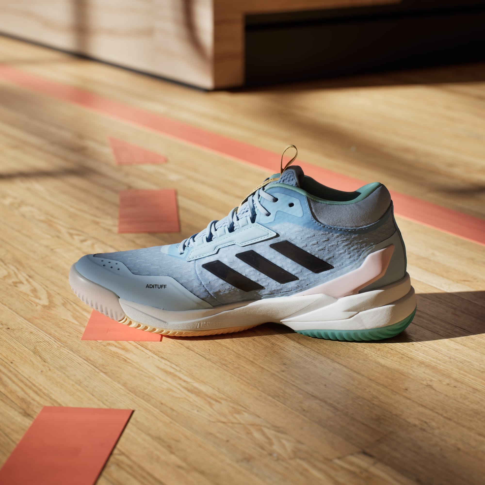 Rise above the competition in these lightweight adidas shoes. Made for indoor sports, Crazyflight 6 trainers have a breathable mesh upper with a soft lining. Ready to ignite takeoffs and cushion landings, these shoes offer supreme stability during sideways movements. The mid-cut design adds greater support around the ankle.