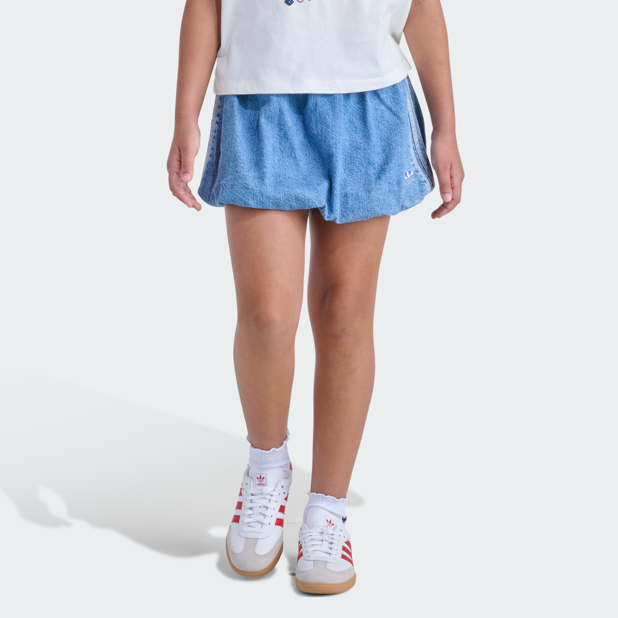 Everyday adventure gets a bold remix with the adidas Denim Bubble Skort. Designed for kids, this skort fuses the classic look of a denim skirt with the freedom of movement that only built-in bike shorts can deliver. The elastic waistband provides a stretchy, secure fit, supporting every jump, skip and cartwheel with ease. The signature adidas 3-Stripes detail finishes off the look with style. Machine washable for hassle-free care, this skort is a go-to for active kids who want a blend of elegance and comfort wherever they go.