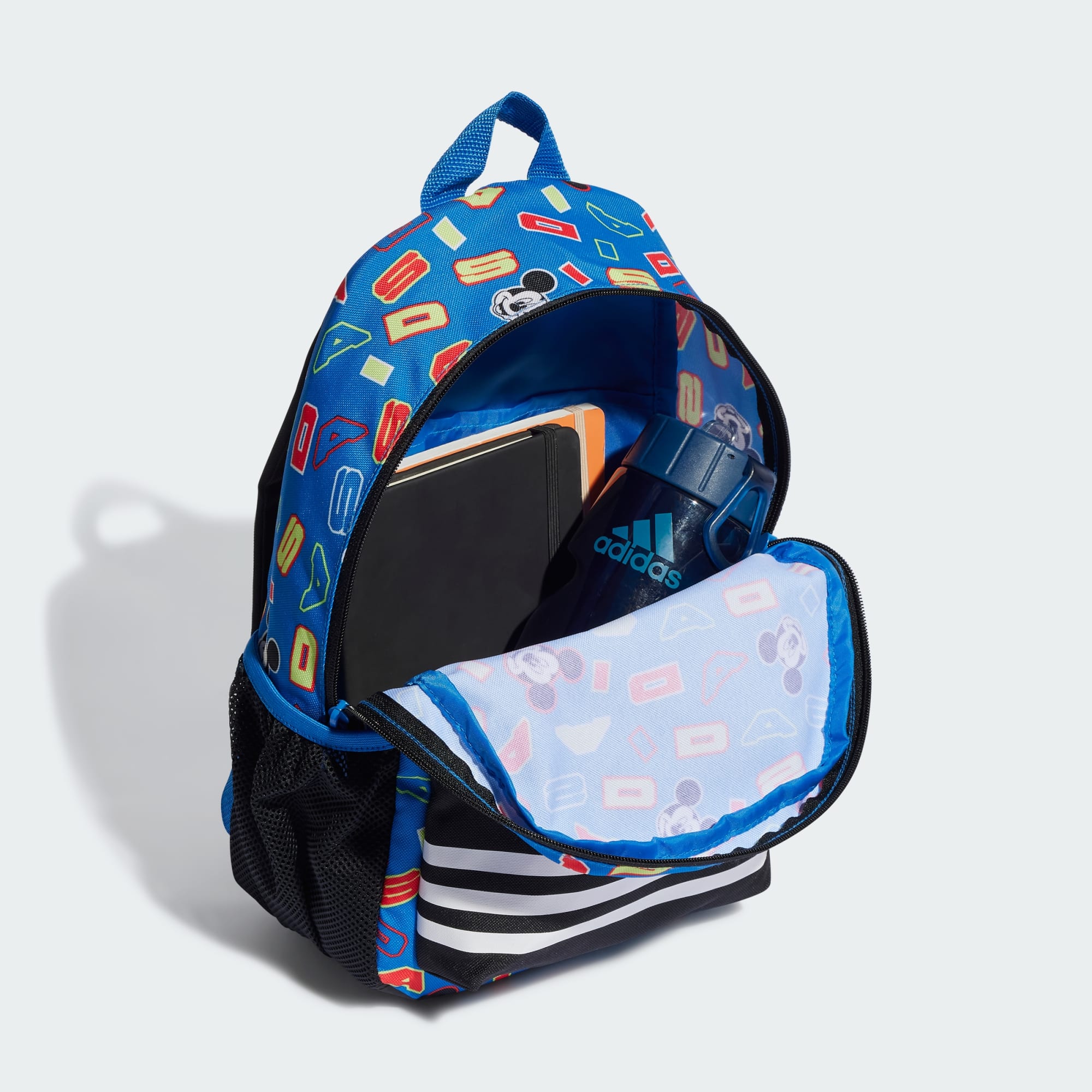 It's always more fun when you bring friends along. Here, Disney's Mickey Mouse joins your next adventure in this juniors' adidas x Disney backpack. It's the perfect bag all your gear — side pockets, a large main compartment and an adjustable chest strap for when things really get moving. Made with a series of recycled materials, and at least 40% recycled content, this product represents just one of our solutions to help end plastic waste.