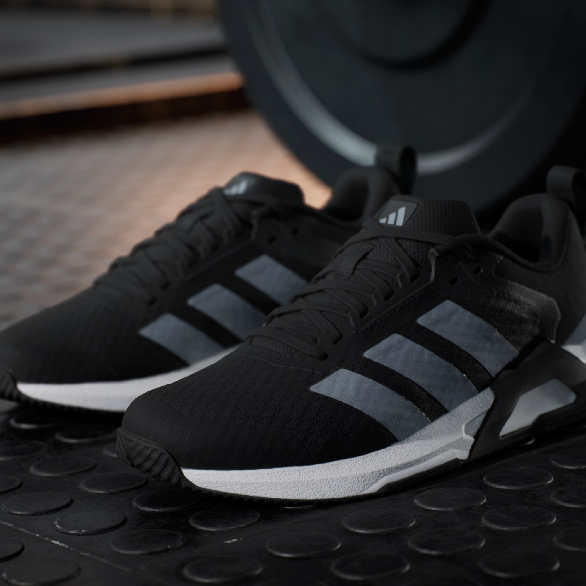 Stable lifting shoes with multidirectional grip.