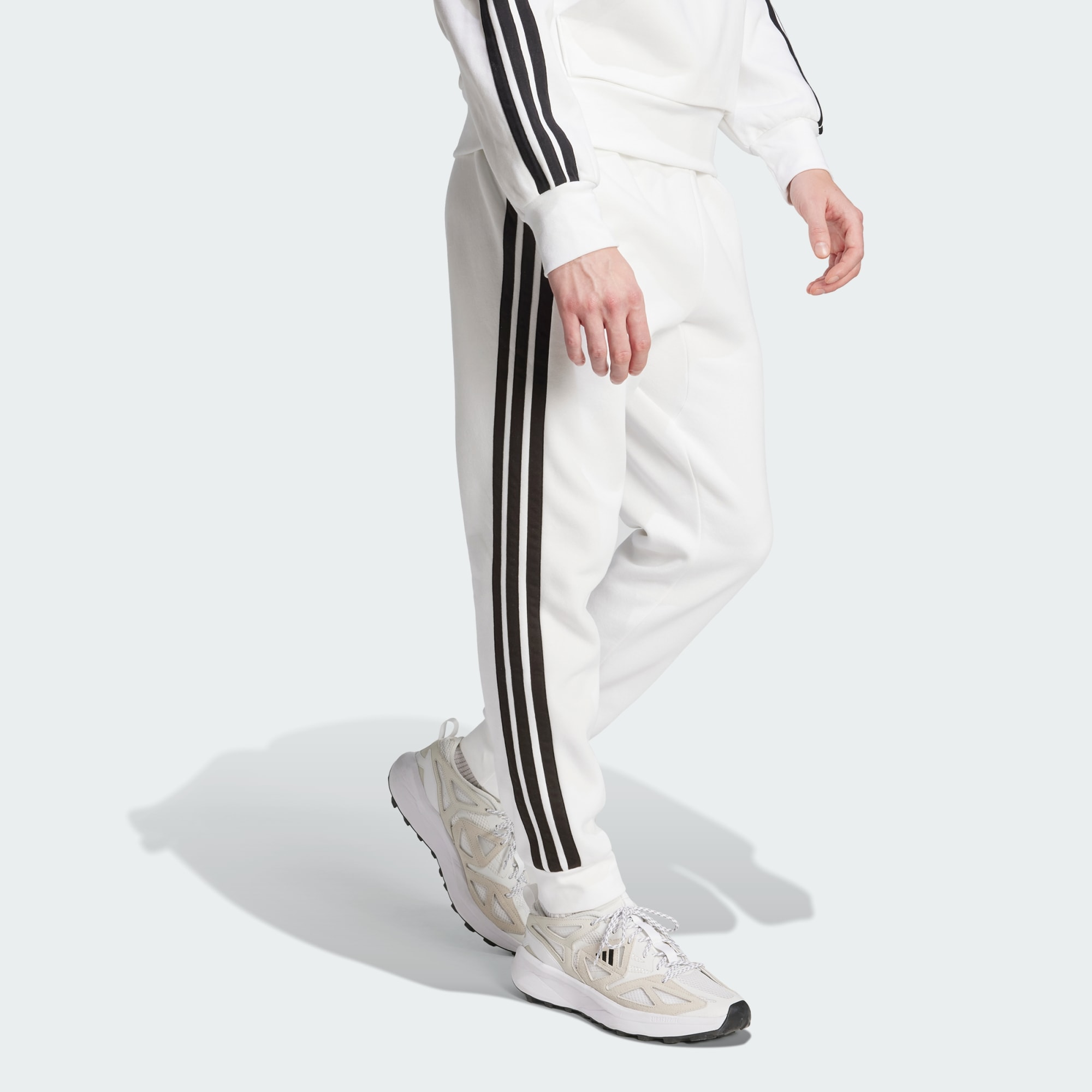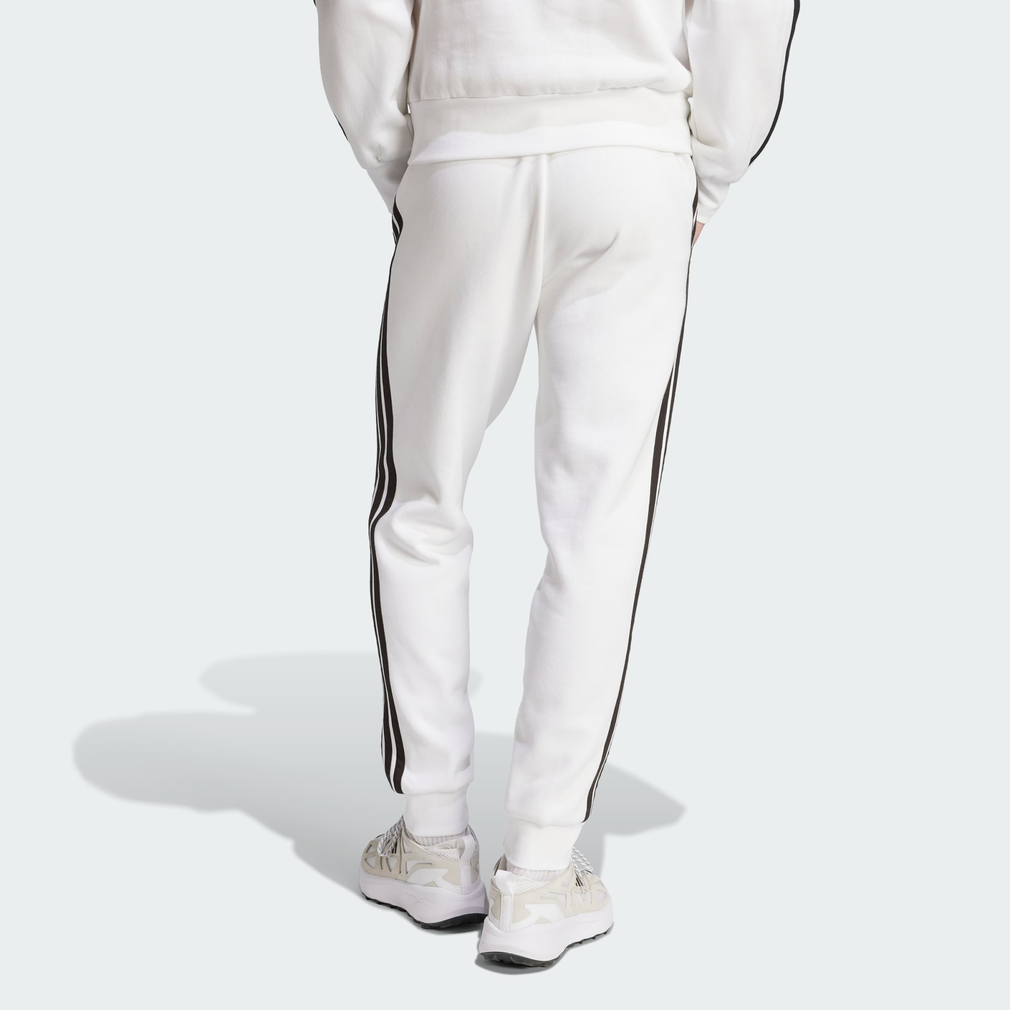 You can rock a sporty look every day in these adidas pants. They're made from soft fleece with ribbed cuffs that seal in warmth. Iconic 3-Stripes down the sides give them an athletic attitude. By choosing recycled, we are able to reuse materials that have already been created, which helps to reduce waste. Renewable materials choices will help us to remove our reliance on finite resources. Our products made with a blend of recycled and renewable materials feature at least 70% total of these materials.