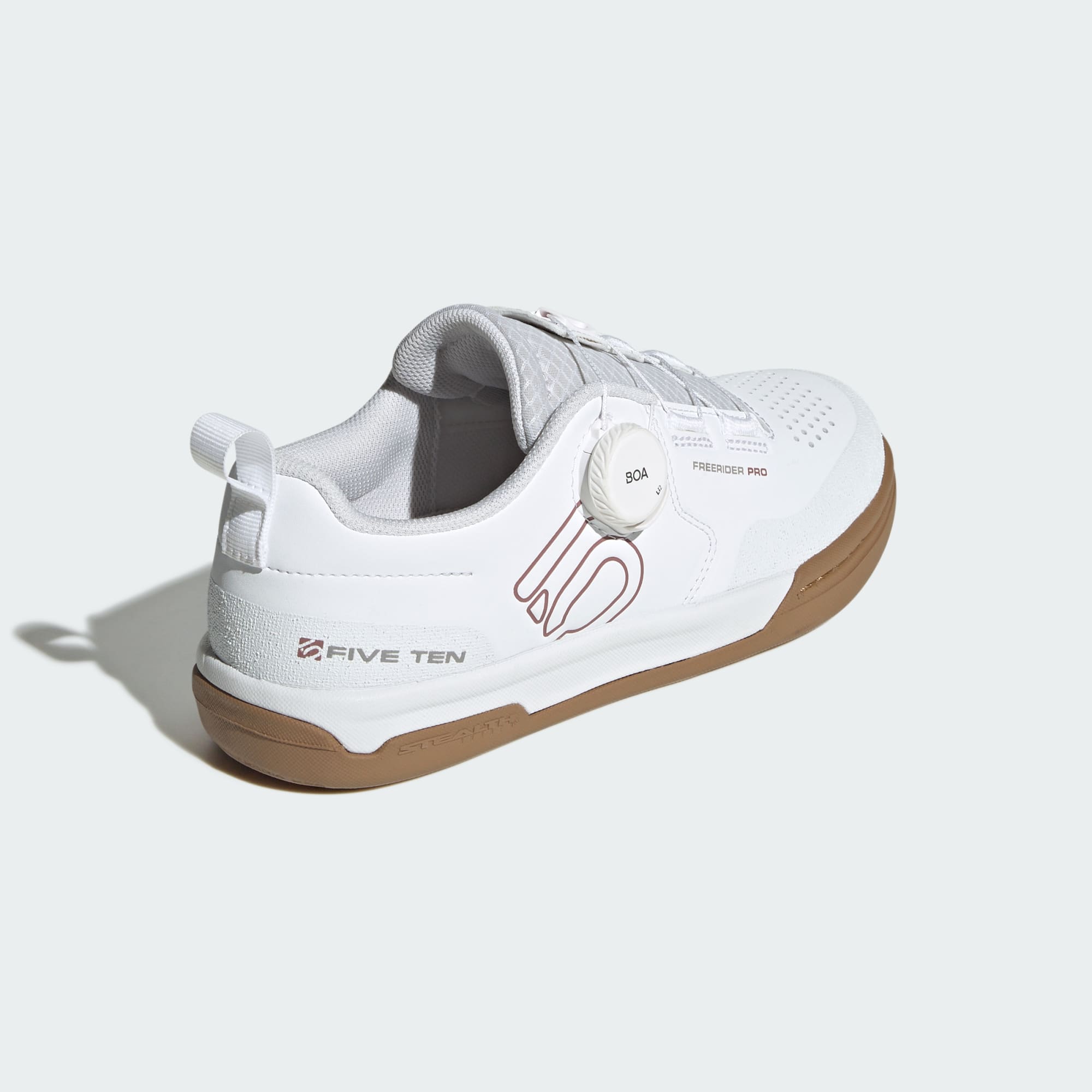 The adidas Five Ten Freerider Pro BOA® brings on-the-fly adjustment to the proven comfort and flat pedal performance of the iconic Freerider. The BOA® Fit System lets you micro-adjust the feel to match your feet. Snug them up for rowdy descents and loosen them up post-ride, all with the quick turn of a dial. They're packed with the performance and comfort that set the bar for flat pedal mountain bike shoes, including the grip of Stealth rubber, a quick-drying upper and a balanced flex. A reinforced toe adds impact resistance, and a cushioned midsole keeps you focused on the fun on and off the bike. This product is made with at least 20% recycled materials. By reusing materials that have already been created, we help to reduce waste and our reliance on finite resources and reduce the footprint of the products we make.