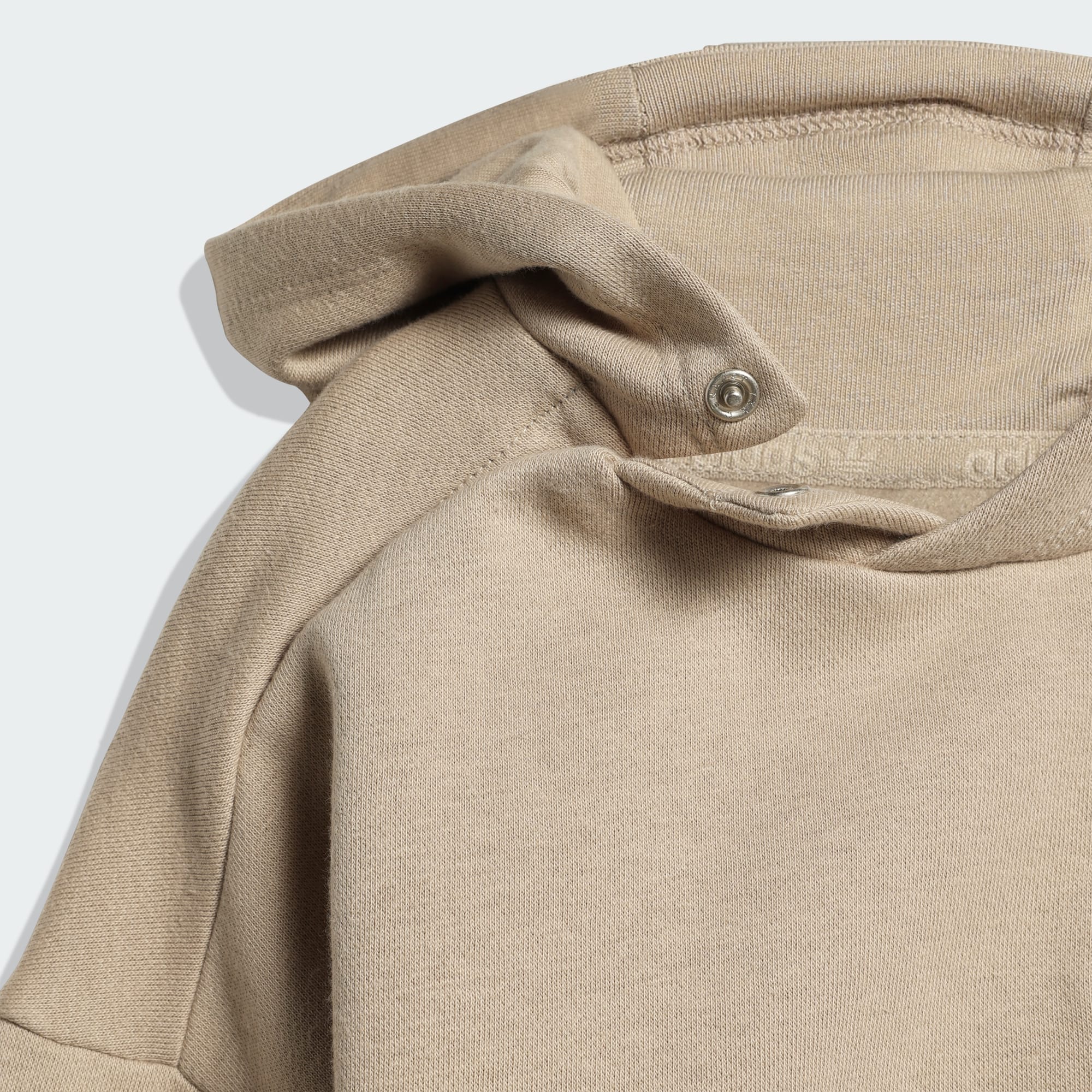 Comfortable hoodie and pants with snap closure for convenience.