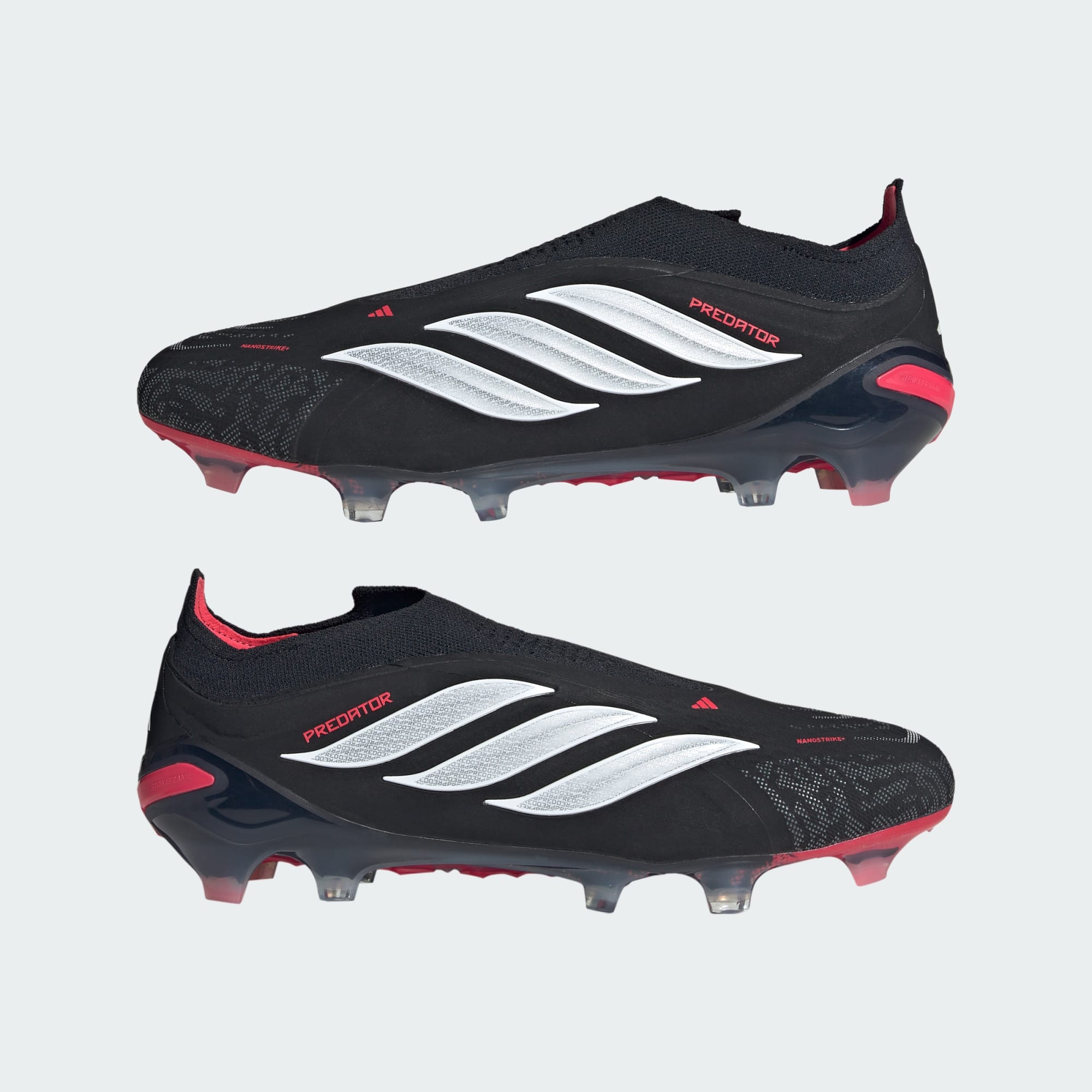 Exude confidence on the field in the Predator Elite Laceless Firm Ground Soccer Boots. Designed for those who dare to dominate, these boots help you take control in front of the goal. The laceless design offers a sleek fit, allowing you to focus on your performance without distractions. The Primeknit upper molds to the shape of your foot, providing comfort and a sock-like fit. Precision-engineered fabric supports dynamic, agile movements. Integrated rubber grip elements aid striking precision, whether in dry or wet conditions, making these boots a reliable choice. With Powerspine technology, these boots deliver strong shots, offering midfoot stability. The lightweight Strikeframe plate aids optimal traction, enabling goal-scoring conditions with ease. With innovative mesh and striking technology, these Nanostrike+ boots embody the future of soccer. Experience the future now and unlock your goals in the Predator Elite range.