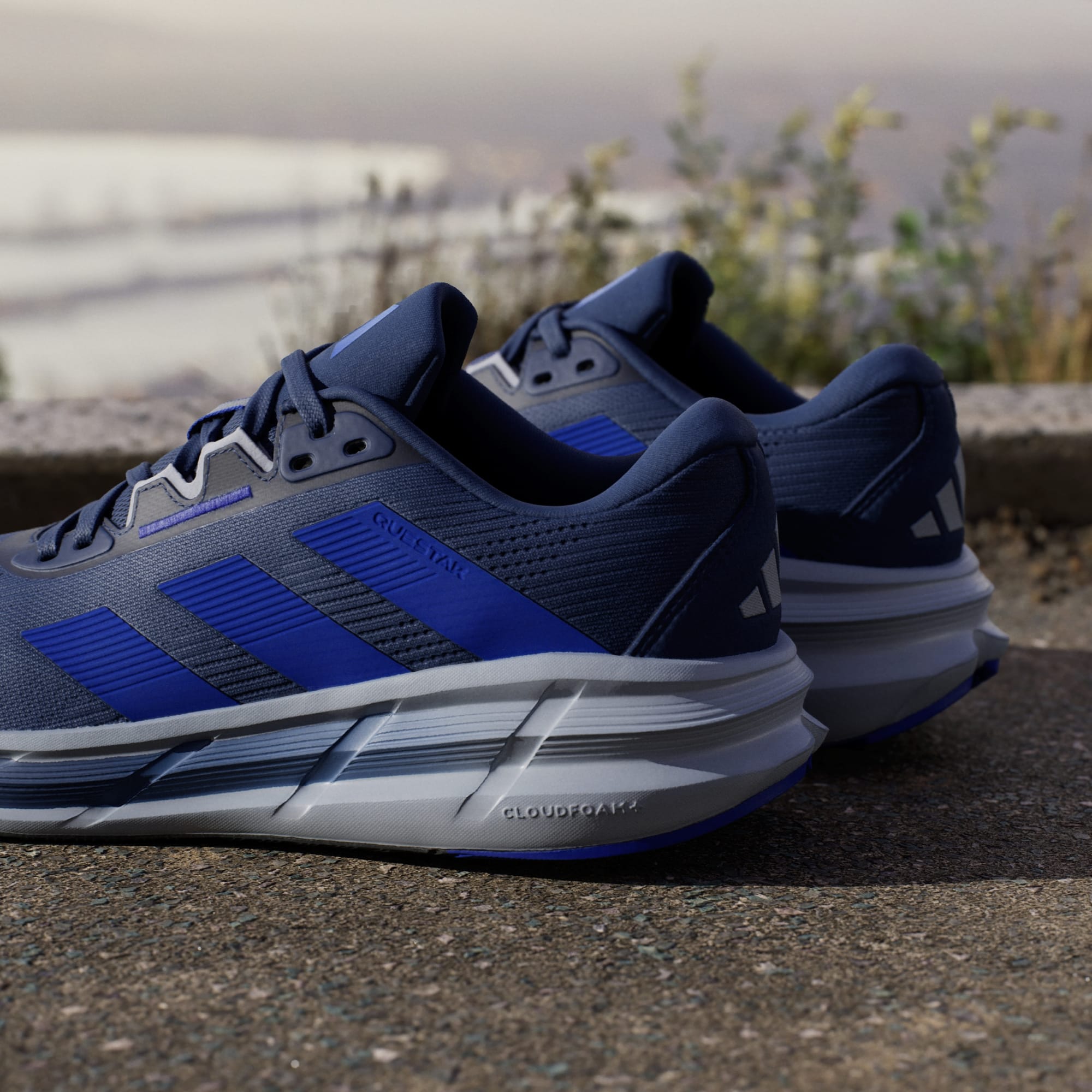 Push your training to the next level. These adidas running shoes make your daily run feel effortless thanks to full-length Bounce cushioning that adds spring to your stride. A Cloudfoam Plus footbed helps recharge your energy with pillow-soft cushioning, while a breathable mesh upper feels light and airy while providing support for a stable ride.