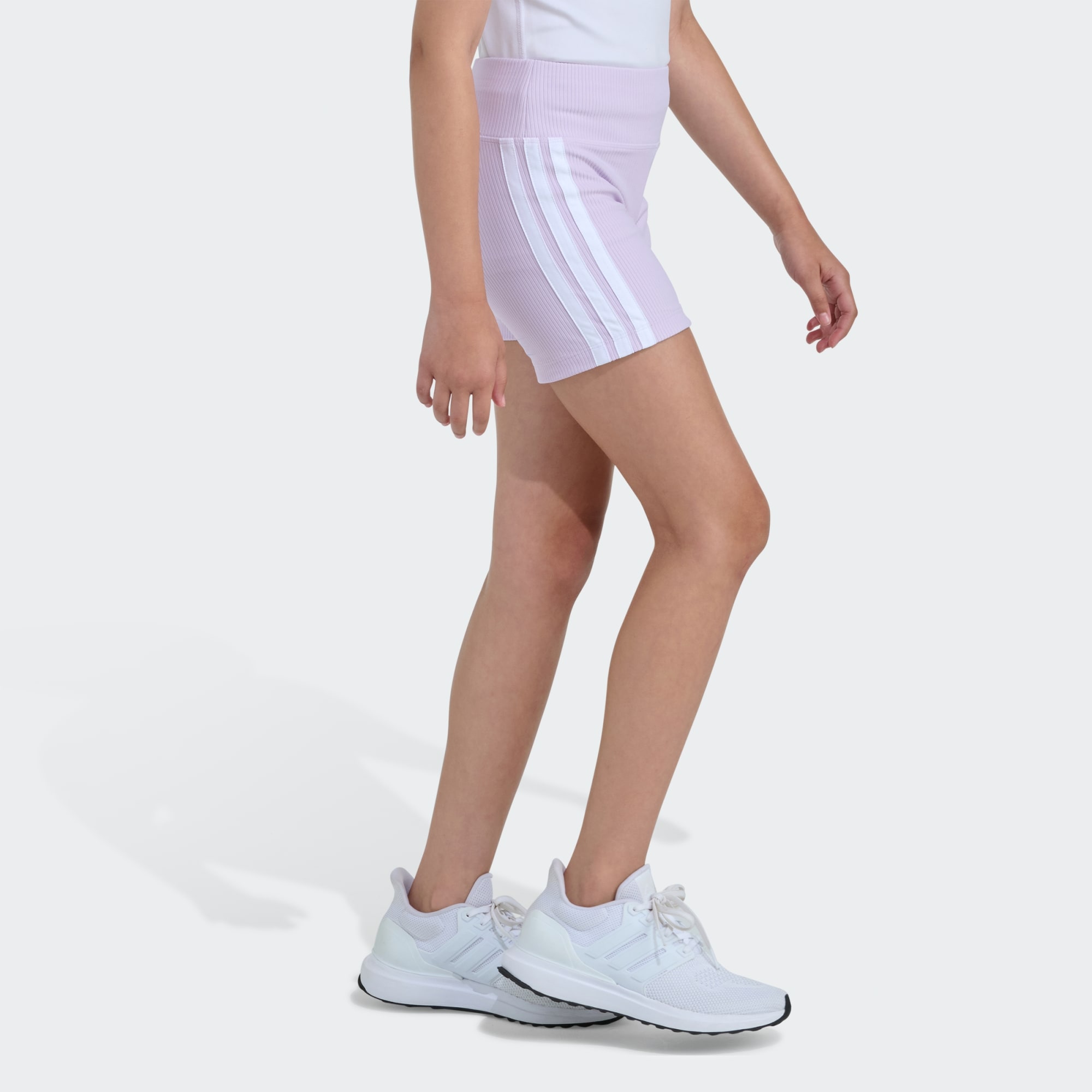 Stand out in these eye-catching Rib Bike Shorts from adidas. They include a high-low hem with a raw edge for an on-trend look. Their short length, meanwhile, brings a sporty feel that's backed up by the attached, cycling-style inner shorts. The regular cut provides a balance between loose and snug, helping you move freely. The encased elastic waistband brings a secure fit that adds self-assurance to every step. Made from durable interlock fabric, these shorts are built to withstand daily adventures and are machine washable for easy care. So pull them on and attack your day with confidence.