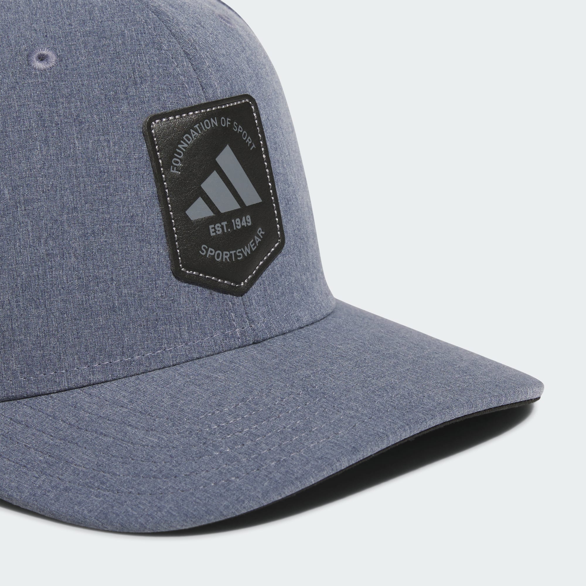Classic shape meets endless versatility. This men's adidas snapback hat puts the finishing touch on your look with its structured six-panel crown and flat brim. It's made from heathered fabric with a polyurethane leather logo. Snaps in back let you adjust to find the perfect fit.