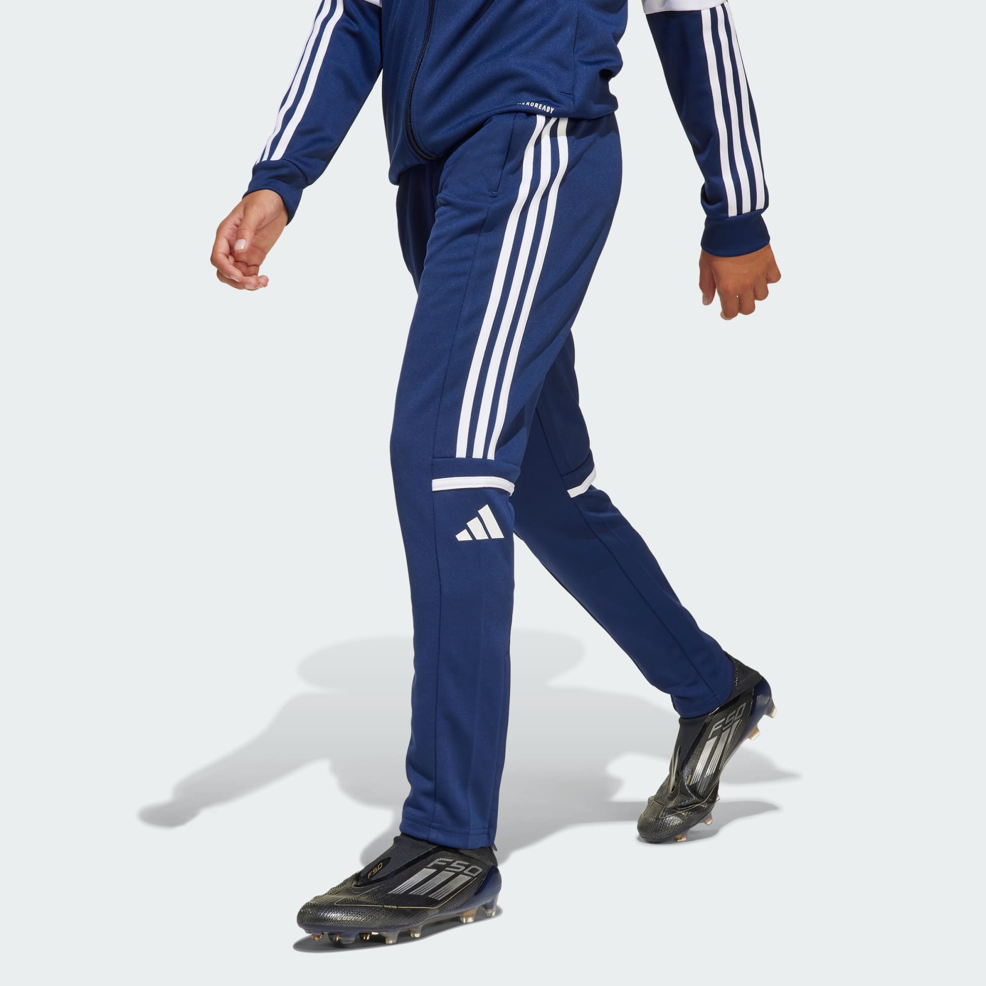 Take the training pitch by storm in these juniors' adidas pants. Part of a Squadra 25 range focused on amateur soccer, they're ideal for when you need an extra layer. AEROREADY manages moisture to keep you dry and comfortable when sessions go into overdrive. Ankle zips make them easy to peel off when you're up to temperature. This product is made with 100% recycled materials. By reusing materials that have already been created, we help to reduce waste and our reliance on finite resources and reduce the footprint of the products we make.