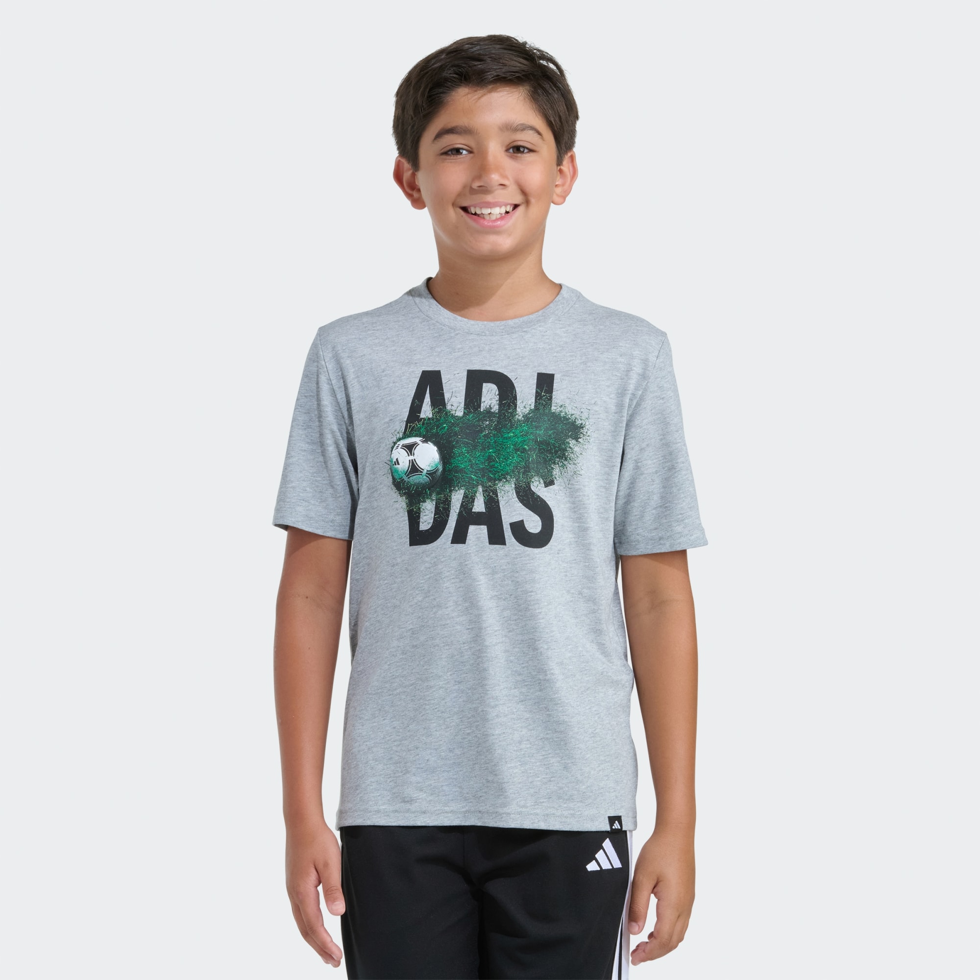 Introducing the Soccer Motion Tee. Designed for young soccer enthusiasts, this tee will soon become your child's go-to choice for their everyday pursuits. Created with a rib-knit crew neck for a classic look and comfort, in a regular fit that strikes a balance between loose and snug, while the short sleeves and regular length offer an easy athletic style. Made of soft jersey fabric that is breathable and durable to withstand the rigors of sport and leisure activities, allowing your child to move around freely without any distractions as they have fun. Simply pop it in the washing machine at the end of the day, so it's ready for their next adventure. Whether it's for a day at school or a weekend soccer game, this tee effortlessly combines style and function. Rely on adidas to deliver a tee that supports your child's active lifestyle and expresses their love for soccer.
