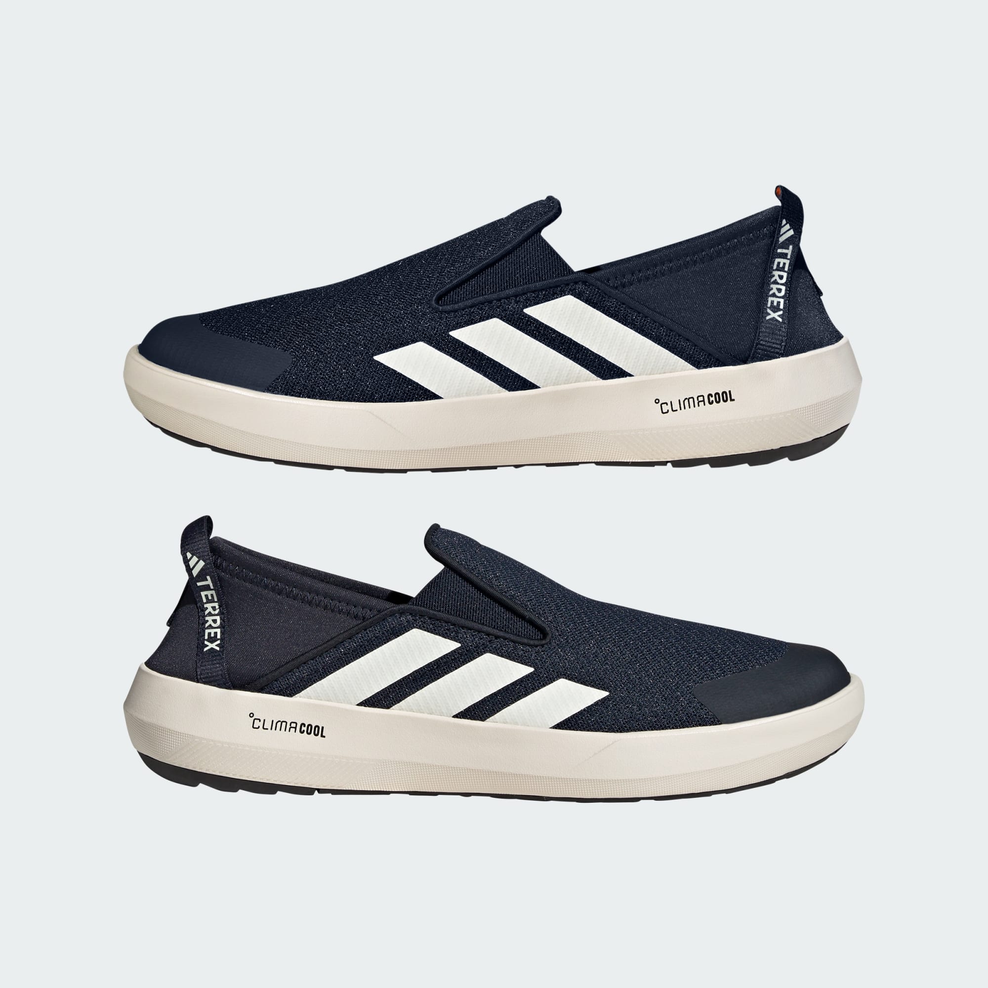 Float a river, hike a rocky shoreline or relax in town. These adidas Terrex boat shoes are clip-on sneakers made for comfort, support and traction in or around water. From boat to beach or town, CLIMACOOL wicks and disperses sweat for cool, dry and distraction-free comfort. They have a snug, sock-like fit with a quick-drying upper and a grippy outsole for confident grip on slippery surfaces. CLIMACOOL helps you manage sweat with materials that wick and manage sweat quickly. Its fast-dry fibers give you a fresh-skin feel.