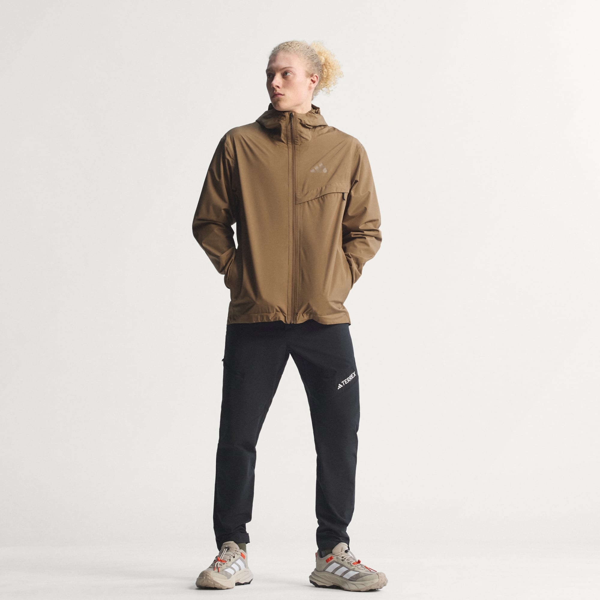Face wet weather head-on with the Terrex Multi 2-Layer Climaproof Rain Jacket. Designed for those who don't let rain change their plans, this hiking jacket provides a protected, confident feel in unpredictable conditions. Climaproof technology helps shield against the elements while supporting breathability, so you can stay focused on the trail. Functional details include a full front zipper, adjustable hem with bungee and stopper, and partially elasticized cuffs for a secure fit. A zipped security chest pocket offers discreet storage for small essentials. Whether you're trekking forest paths or exploring technical terrain, this jacket combines practical design with clean, rain-ready style.