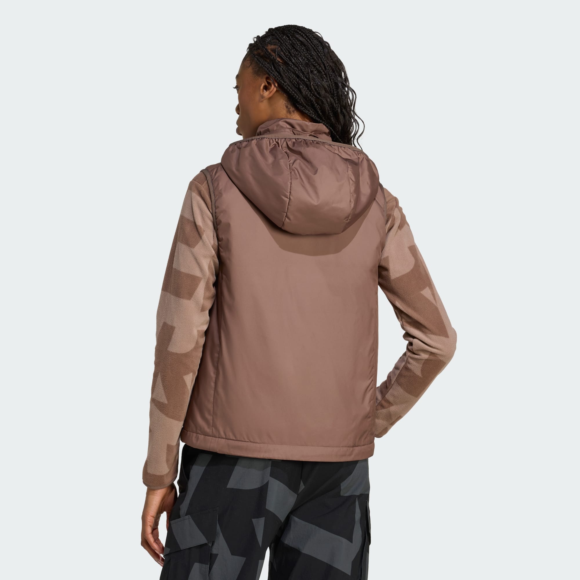 Hike. Explore. Travel. It's hard to beat the versatility of a vest for lightweight warmth. This adidas Terrex vest is the all-purpose adventure layer you can wear hiking and exploring or for added warmth at any time. CLIMAWARM traps heat and releases sweat for a warm, dry and focused performance. A detachable hood and side pockets add everyday utility. CLIMAWARM has insulating materials that trap warmth for optimal body temperature. Stay dry inside with sweat-wicking fibers that keep skin dry and comfy. Dial up warmth retention with first layer comfort to boost heat. This product is made with 100% recycled materials. By reusing materials that have already been created, we help to reduce waste and our reliance on finite resources and reduce the footprint of the products we make.