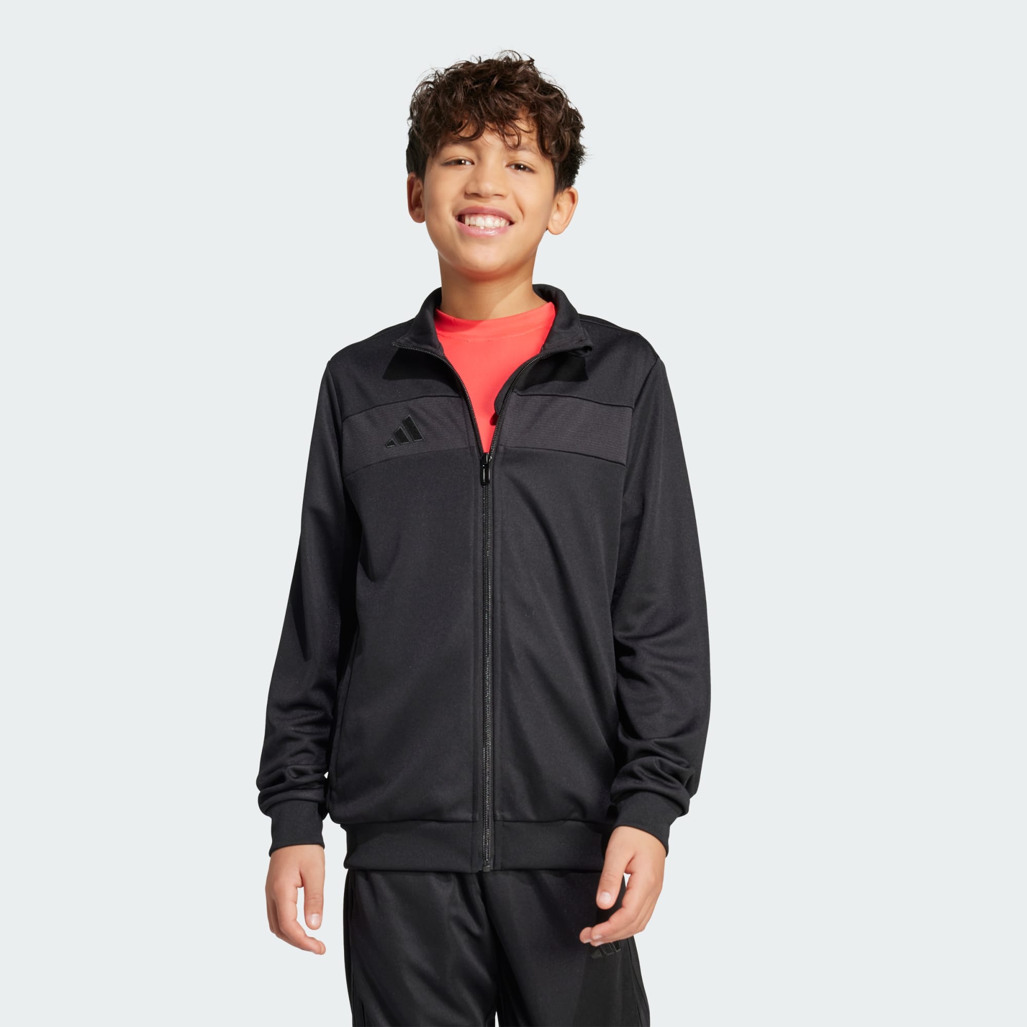 Bring your beautiful game everywhere you go. This juniors' Tiro 25 Essentials jacket from adidas takes its lead from soccer training apparel to offer a sporty look and comfortable feel. AEROREADY ensures you stay dry and focused when the pressure's on. That clean design transitions seamlessly from pitch to street. This product is made with 100% recycled materials. By reusing materials that have already been created, we help to reduce waste and our reliance on finite resources and reduce the footprint of the products we make.