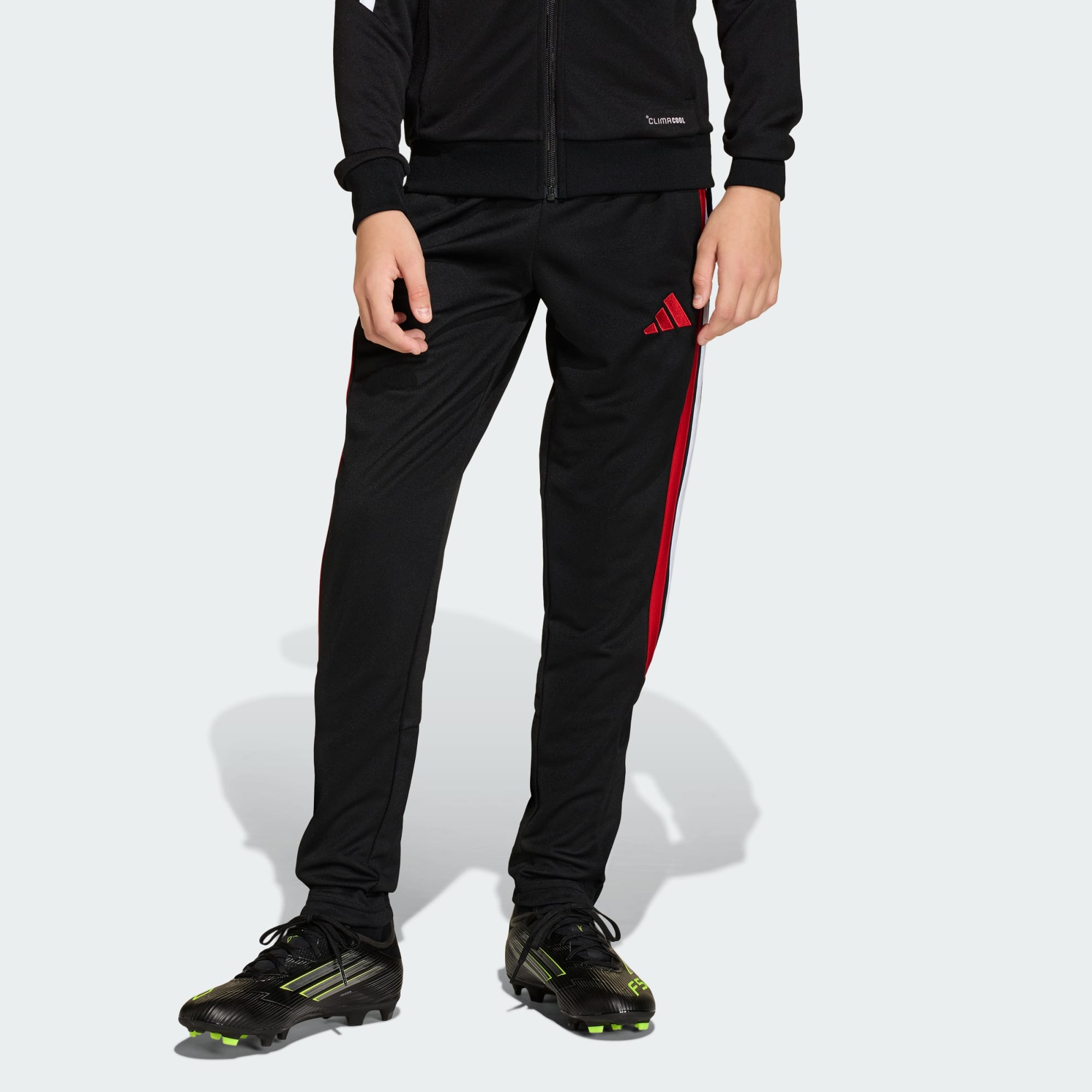 Step onto the pitch with confidence in the Tiro26 League Kids Training Pants. Inspired by elite design, these pants offer a fast and modern look that fits seamlessly into your child's active lifestyle. Whether it's playtime, school activities, or sports practice, these pants are designed to keep up with every movement. Crafted with Climacool technology, they wick and disperse sweat, helping your child feel cool, dry, and focused during intense activities. The fabric mix follows the new Climacool standard, providing comfort and performance. With leg zippers for easy on and off, these trousers are great for quick transitions during training sessions. The classic embroidered adidas logo and laid-on 3-Stripes add a touch of soccer heritage, whilst zipped pockets offer secure storage for essentials. Designed with a mid-rise waist and standard fit, these pants provide a comfortable and secure feel, allowing your child to move freely and confidently.