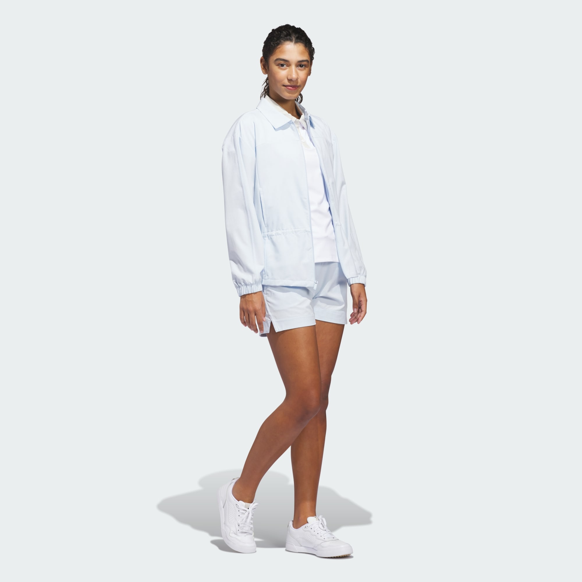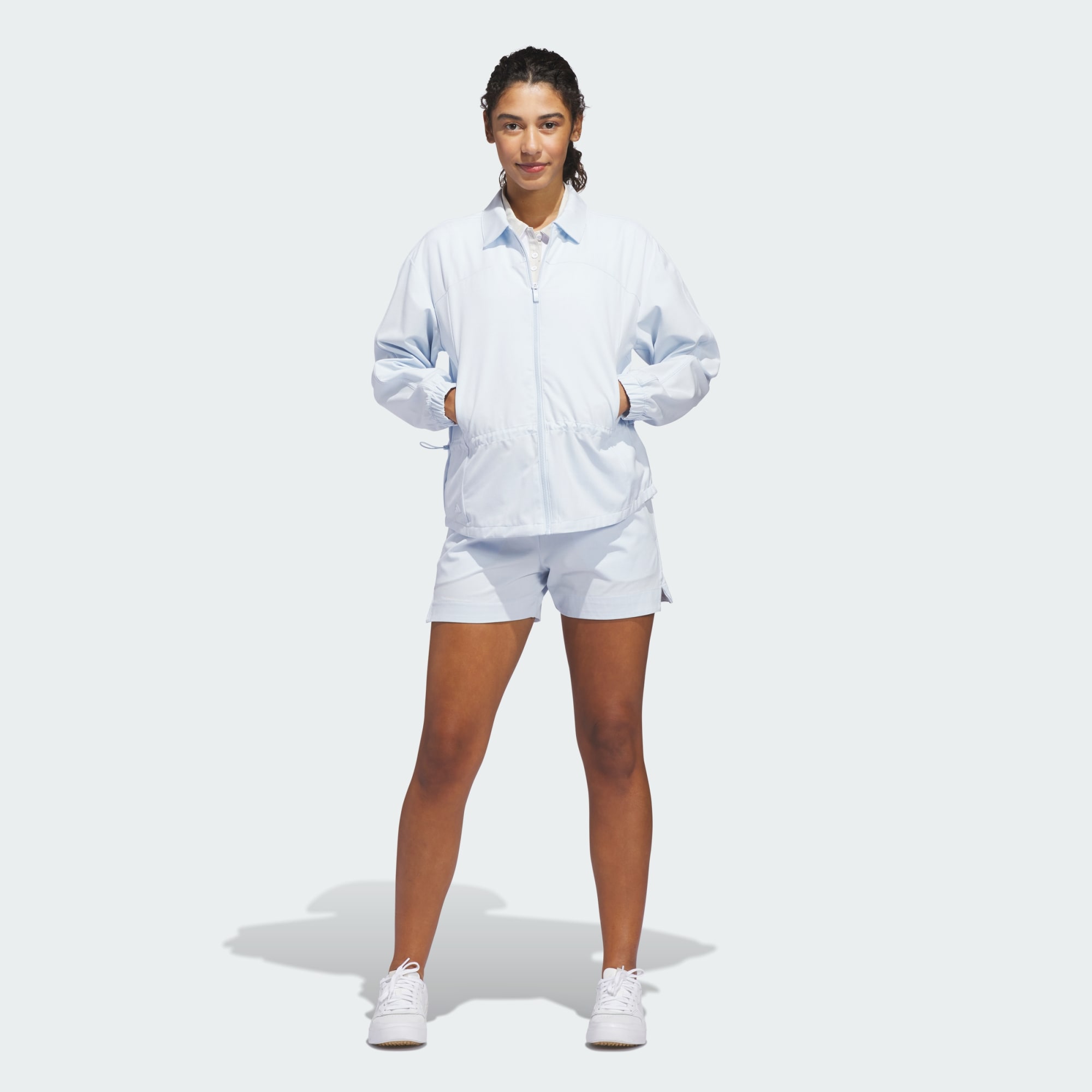 Step onto the golf course with confidence in the Ultimate365+ Peplum Grid Jacket. This piece of classic performance golf clothing blends tradition with modern functionality. The loose fit design offers a relaxed silhouette, great for layering over your favorite golf attire. The plain weave material provides a smooth and durable finish. The collar adds sophistication, with a full zipper closure for convenience. This jacket is a testament to adidas' commitment to quality and performance. Whether you're navigating the fairways or socializing after the game, this jacket offers comfort and style, helping you stay focused on your swing.