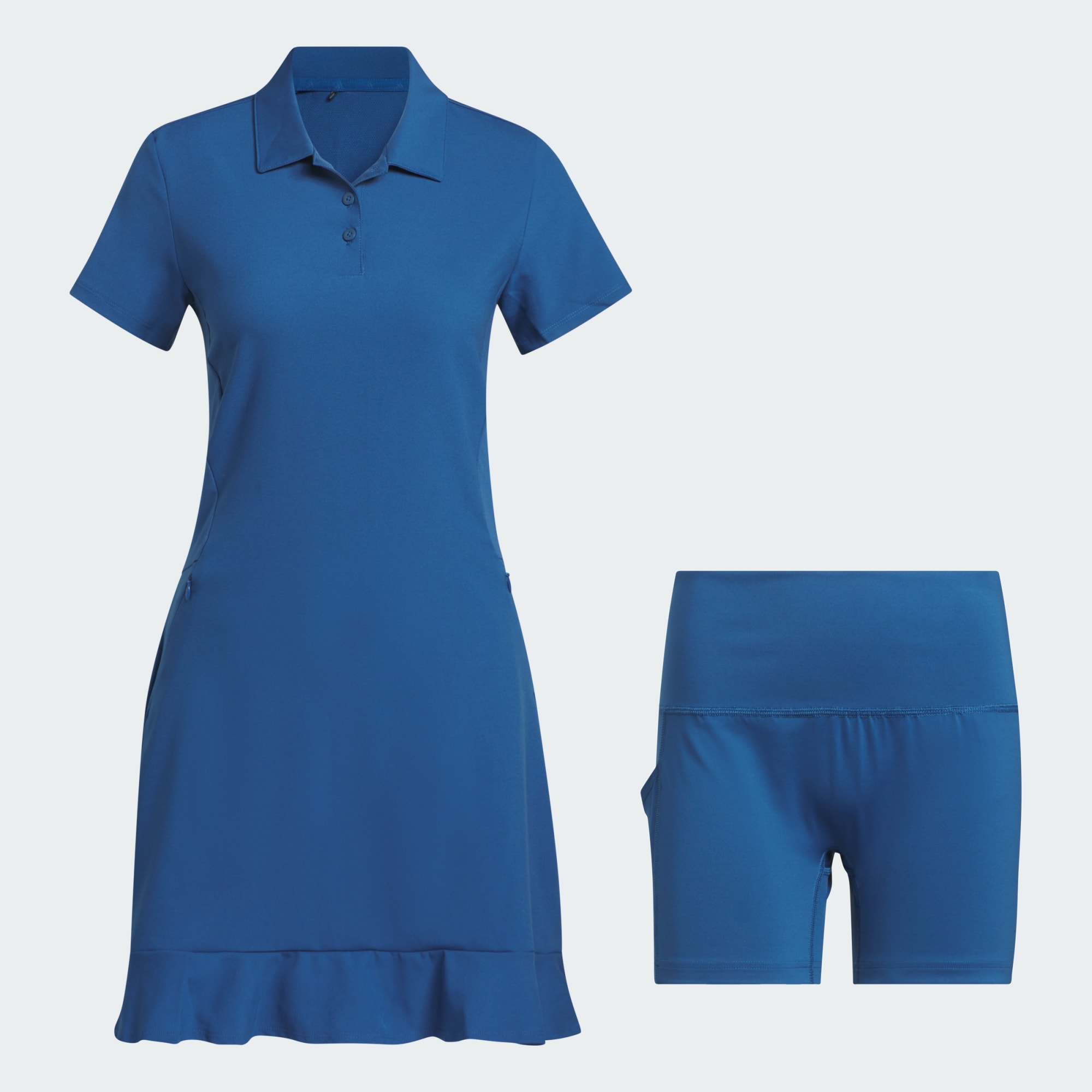 Enjoy effortless movement and all-day comfort in this adidas golf dress. Stretch performance and built-in shorts support you from tee off to clubhouse.