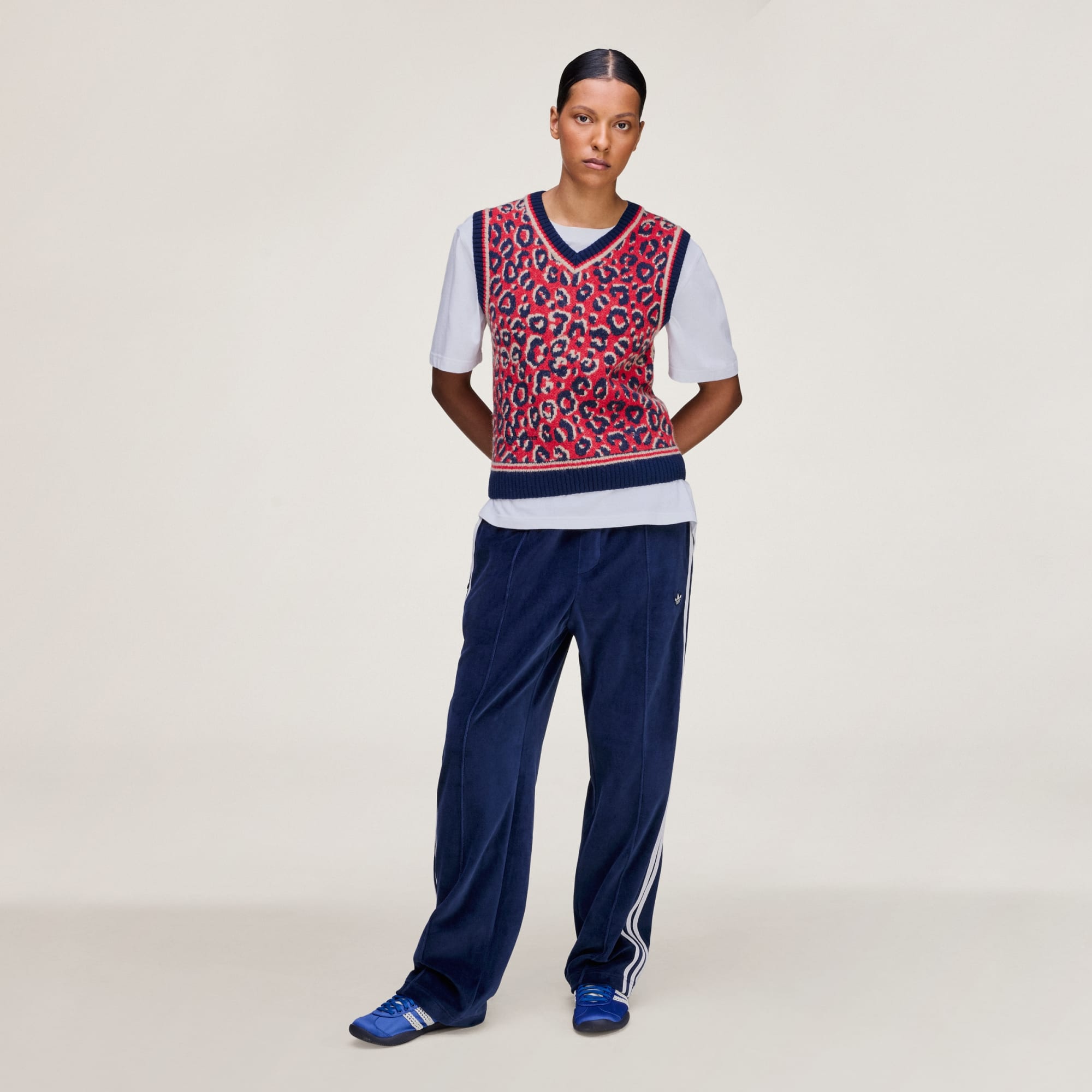 The Wales Bonner Knit Vest is where luxury meets streetwear in a bold statement piece. Designed in collaboration with Wales Bonner, this vest is part of the adidas Originals collection. This vest is made from knit fabric for a soft, breathable feel. Its regular fit design combines comfort with a sleek silhouette. Layer it over a shirt or wear it solo, this vest adds a touch of sophistication to your look.
