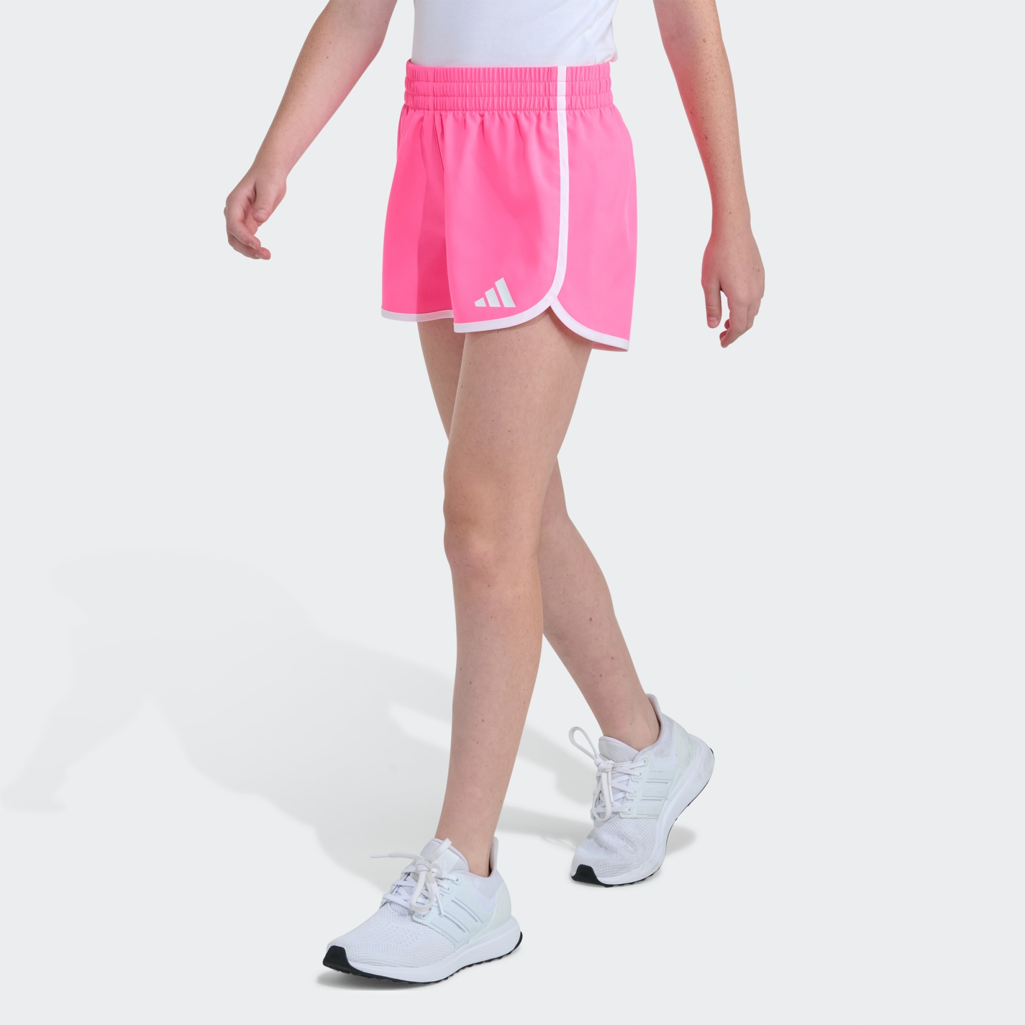 Introducing the Woven Pacer Short with Binding, effortlessly blending style and comfort. Designed for active youngsters, these shorts are their reliable everyday companion for everything from playground adventures to weekend outings. Created from woven fabric that withstands the rigor of fun and games, in a regular fit offering a snug feel and allowing your child to move around freely. The encased elastic waistband with internal drawstring provides a secure and comfortable fit. Featuring a curved lapped hem with binding adding a touch of flair, while the short length gives them a sporty edge. After a day of fun and action, they can be simply popped in the washing machine. Let your child experience quality and performance with these practical and versatile shorts from adidas, whether they’re heading to sports practice or having fun with their friends.