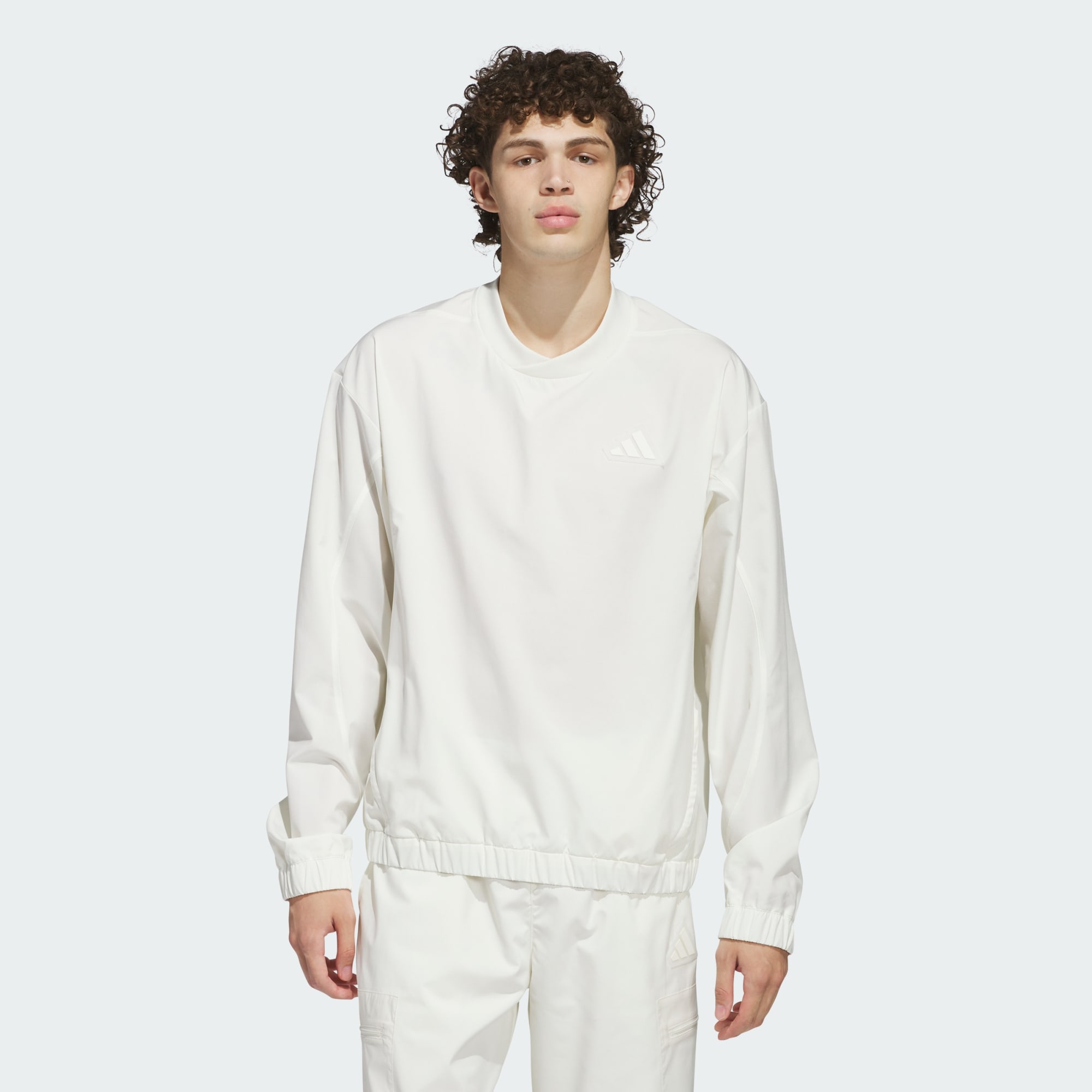 This adidas pullover is all about comfort. Made from woven fabric, it feels smooth to the touch. The loose fit means you have plenty of room to move. Pair this pullover with anything in your closet for a laid-back look that always works.