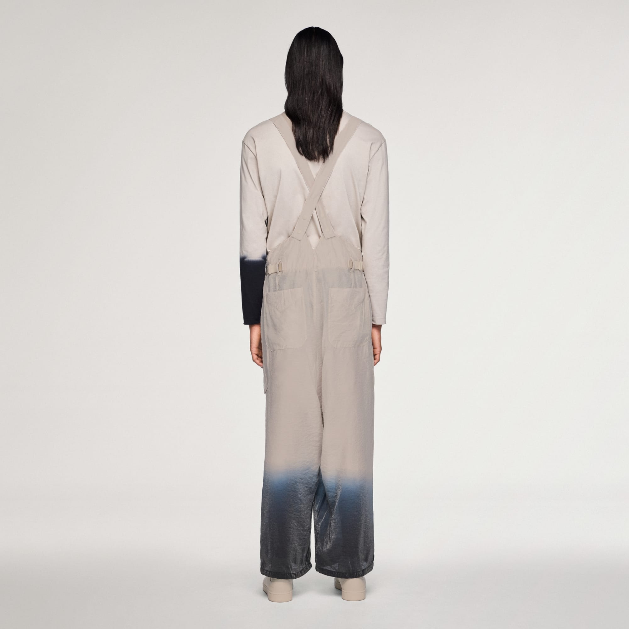 Designed for the modern fashion enthusiast, the Y-3 Crinkle Viscose Suspender Pants are defined by Y-3's unconventional fashion and inspired by the adidas history in sportswear. Crafted with a washed crinkle twill lyocell, these pants offer a soft feel. The elasticized waistband provides comfort and style, while the front fly and belt loops add a touch of practicality. The elegant silhouette of these pants is complemented by functional details with patch pockets on both the front and back. That gives you ample storage for your essentials. The internal tie cords in the cuffs allow for personalized adjustment. The tonal satin heat transfer Y-3 logo adds a subtle yet striking branding element, making these suspender pants a statement piece in your wardrobe.