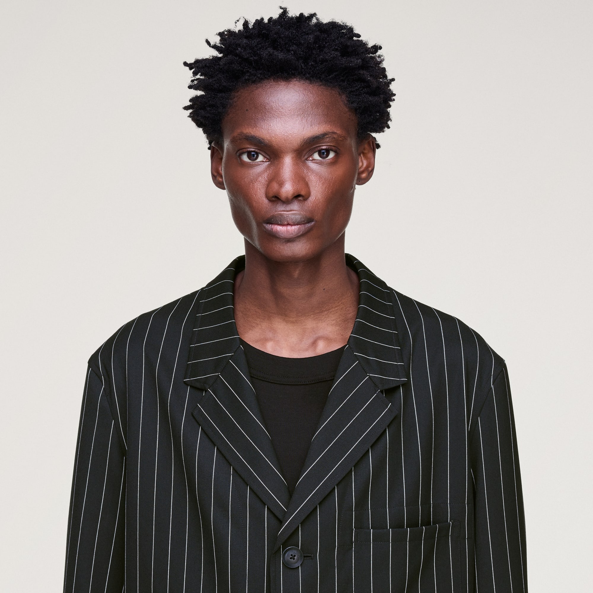 Pinstriped chore coat for subtle sophistication.