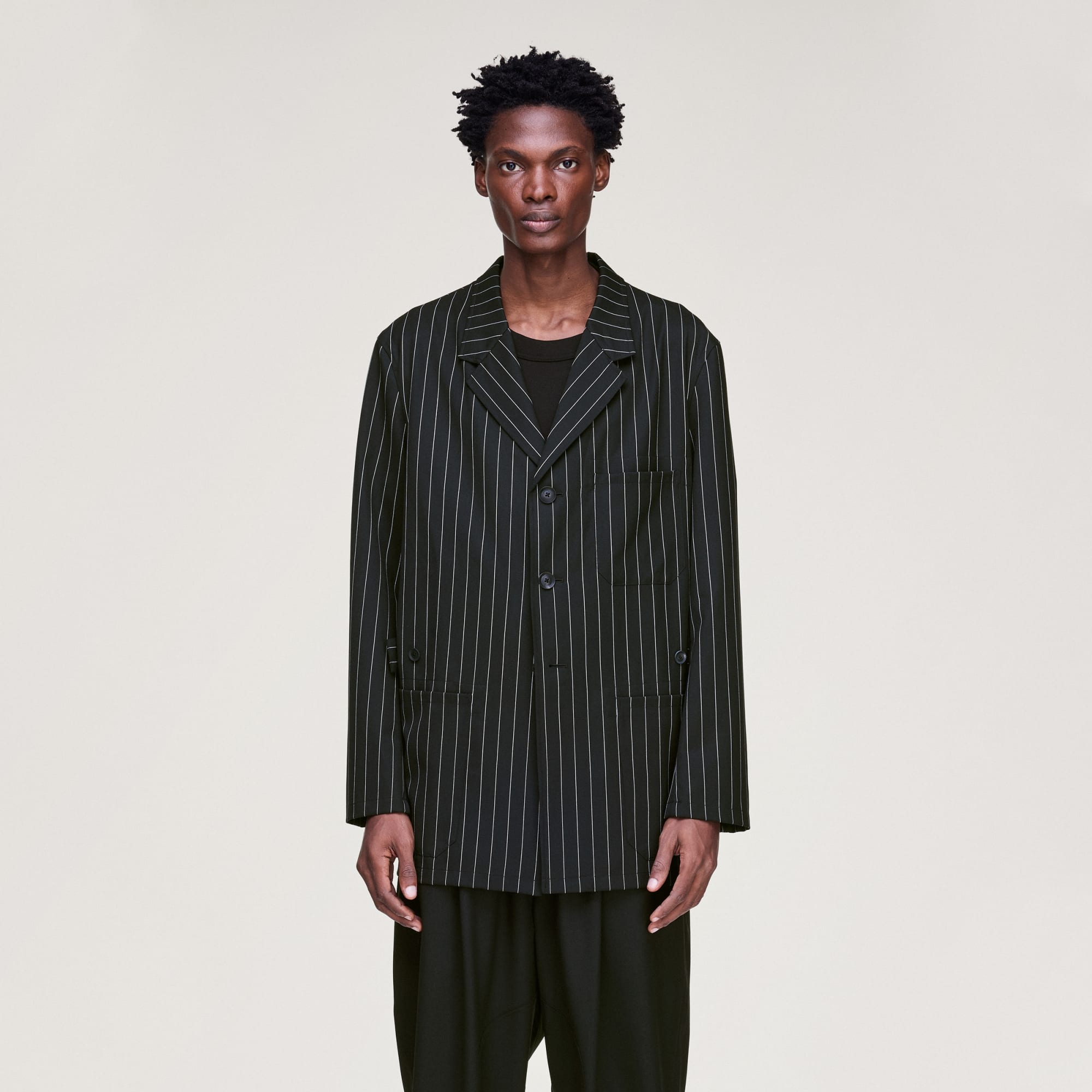 Y-3 PINSTRIPE REFINED WOOL CHORE COAT