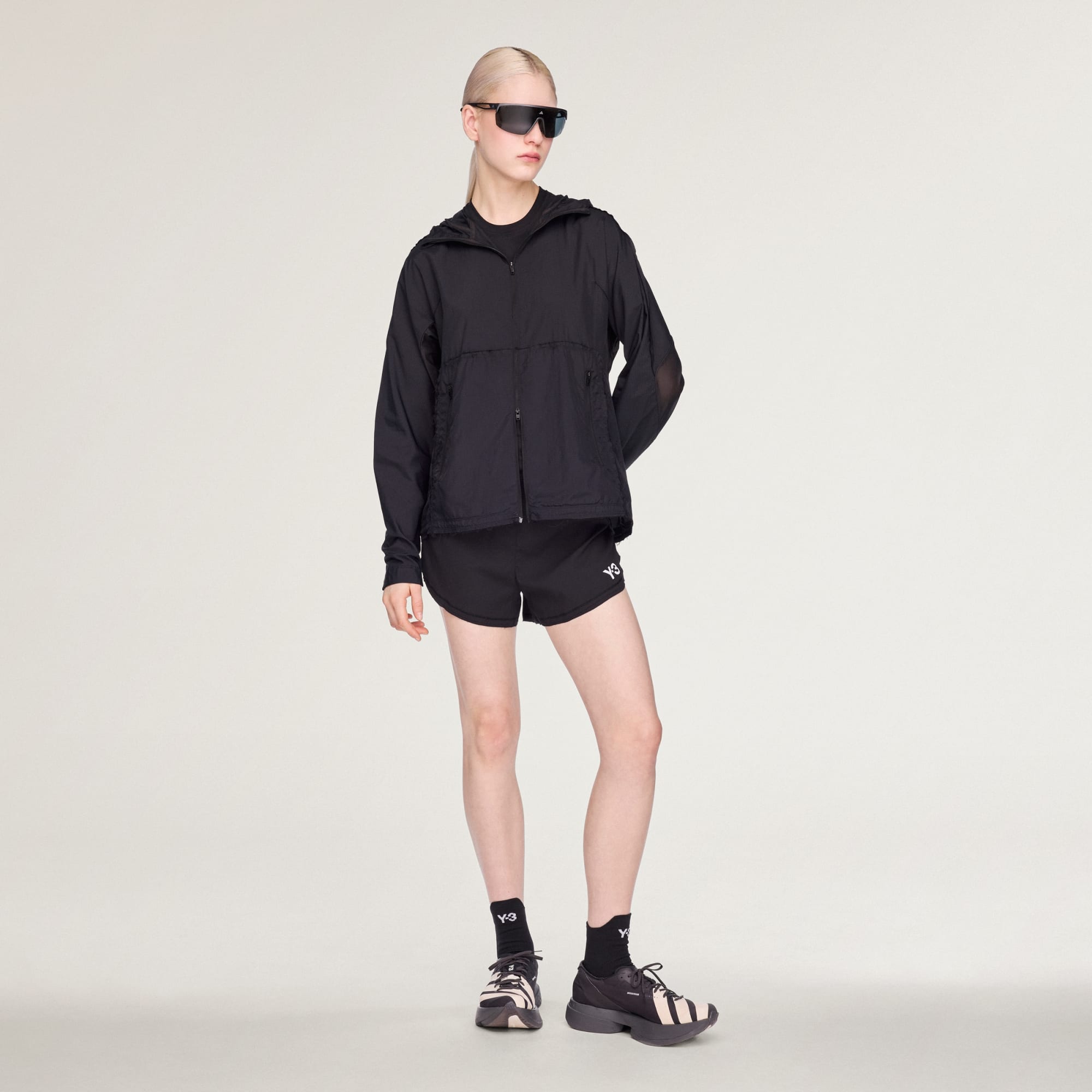 Meet the Y-3 Running Jacket, designed with an eye for detail through the lens of lifestyle and fashion. It blends the unconventional fashion of Y-3 with adidas's technical expertise seamlessly. The dobby weave adds an elegant texture, while the hood, adjustable up to the chin, provides both comfort and style. The woven Y-3 logo and Yohji Yamamoto signature label on lower right back panel adds a touch of authenticity. The jacket features a zipper closure along the center front with branded pullers, complemented by tie cords for a custom fit at the hem and hood. Zipper pockets on both sides offer practical storage, including a mini patch pocket with a key clip to avoid bouncing of the keys while exercising. Embrace the unique fusion of fashion and function with this jacket and let it be the expression of your style.