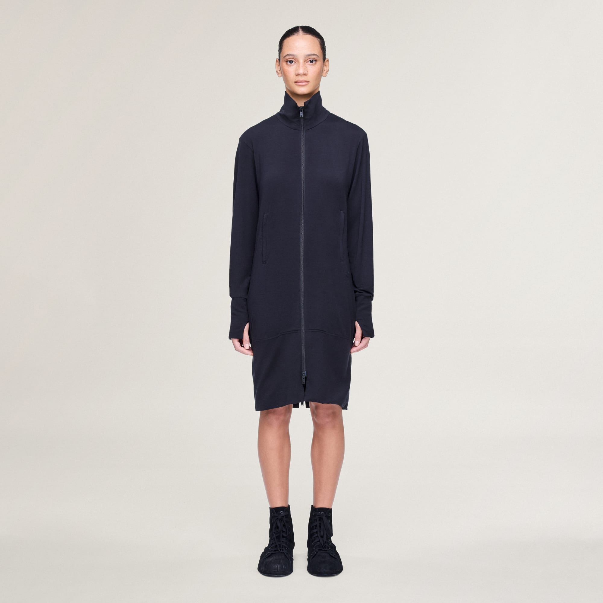 A Y-3 track jacket with an elongated silhouette for individualistic style.