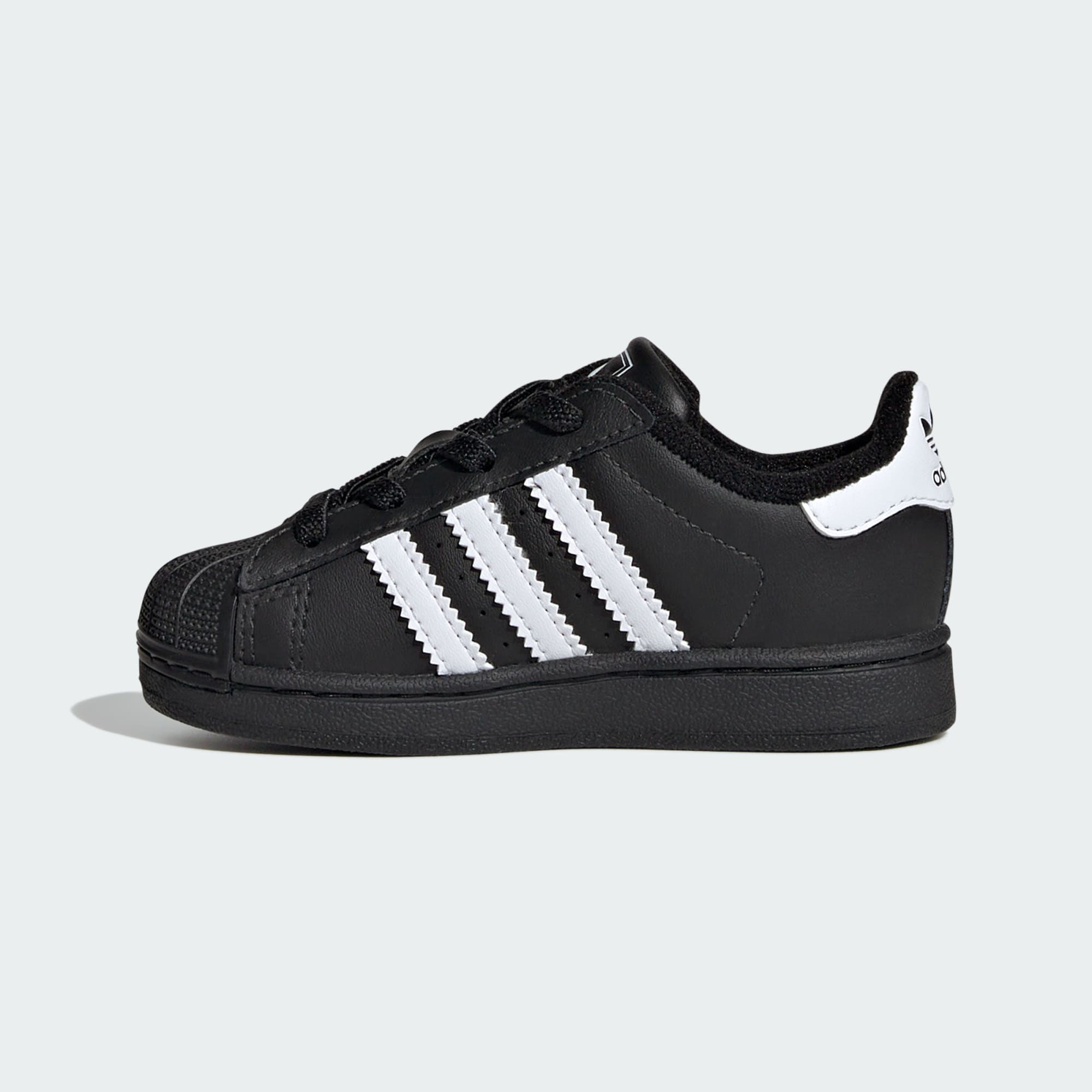 Depuis plus de 50 ans, la chaussure adidas Superstar est une légende. Adoptée par d'innombrables créateurs, athlètes et musiciens, elle est devenue une icône de l'expression de soi. Cette paire pour bébés est faite pour les petits pieds, avec des lacets élastiques qui assurent un maintien parfait pour les bébés actifs. Elle est dotée de la même tige en cuir souple, du même shell-toe en caoutchouc et des mêmes 3 bandes dentelées qui ont fait du modèle original une icône du style.