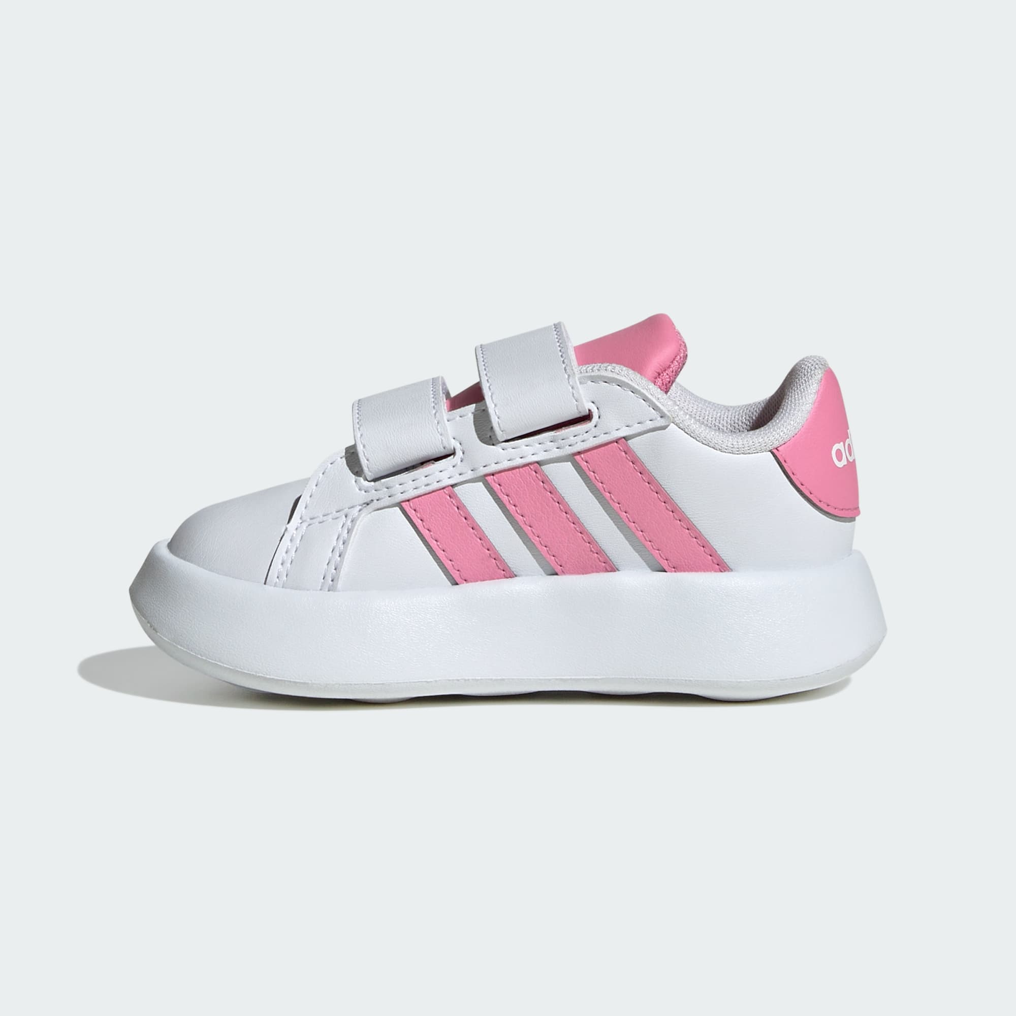 Si les bébés pouvaient parler, ils diraient à quel point ils aiment cette chaussure adidas Grand Court ! Elle s'enfile facilement grâce à des bandes auto-agrippant, et sa semelle en EVA assure un maximum de confort aux petits pieds. Qu'ils soient à quatre pattes, qu'ils se promènent ou qu'ils fassent leurs premiers pas, les couleurs amusantes et les 3 bandes classiques les inciteront à mettre du fun dans leur vie. Ce produit contient au moins 20 % de matériaux recyclés. En réutilisant des matériaux déjà créés, nous contribuons à réduire les déchets et notre dépendance aux ressources limitées, afin de réduire l'empreinte écologique des produits que nous fabriquons.