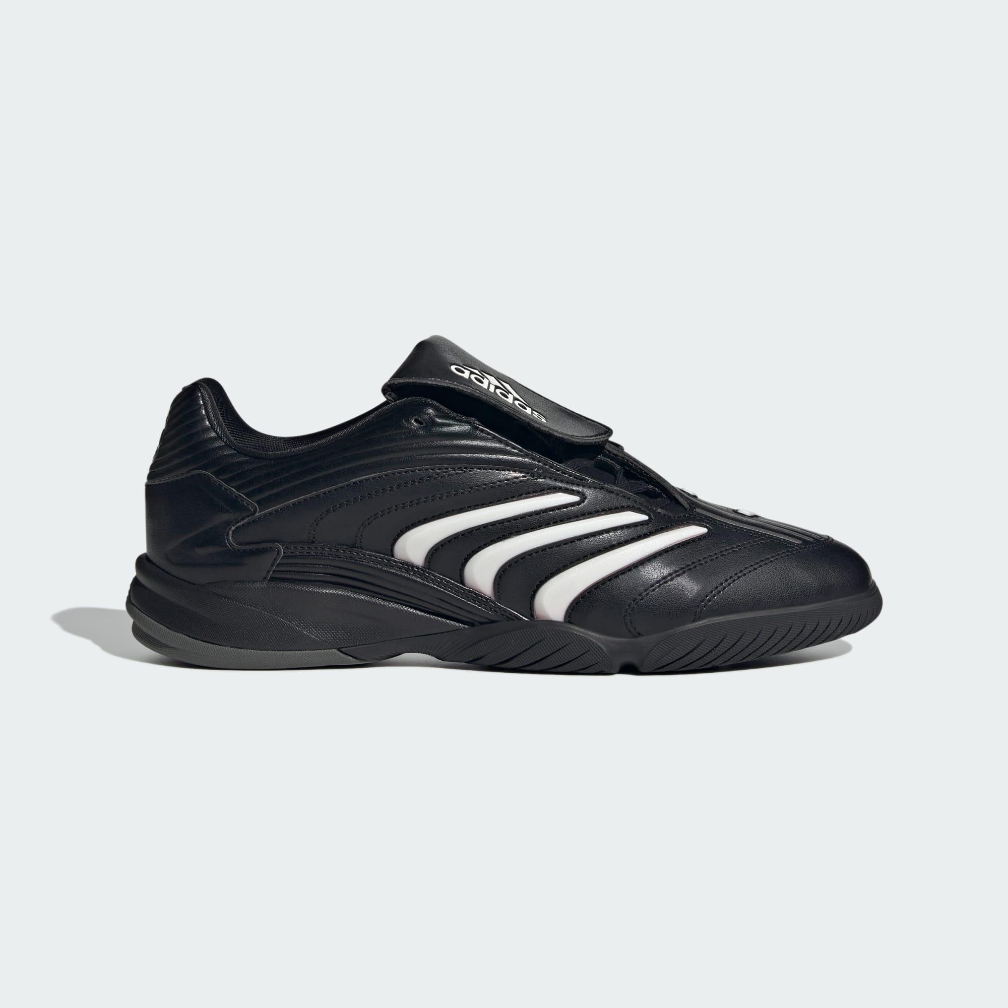 La chaussure Predator Sala unisexe réimagine l'emblématique Predator Absolute pour l'intérieur. Sa tige en cuir synthétique et son contrefort de talon externe font référence à la chaussure de football qui a tout déclenché, tandis que la languette rabattable et les empiècements sur l'empeigne ajoutent de la respirabilité et du confort. Une semelle extérieure en caoutchouc assure l'adhérence pour que tu sois prêt à tout.