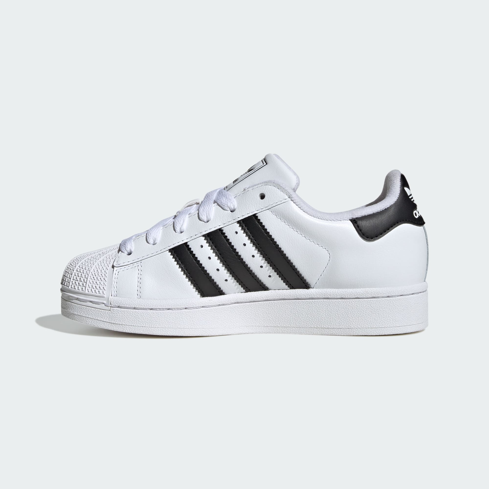 La chaussure adidas Superstar II est de retour et prête à imposer une fois de plus son style street. Avec son design à shell-toe iconique et ses 3 bandes dentelées, cette chaussure fusionne depuis plus de 50 ans le sport et le streetwear. Revisitée dans un coloris noir et blanc épuré, cette sneaker junior procure un confort optimal tout au long de la journée grâce à sa semelle de propreté moulée et à sa tige en cuir structurée. La semelle cupsole en caoutchouc stable avec un motif à chevrons adhérent classique t'assure une accroche supérieure tout en style. Elle ira avec presque toutes les pièces de ta garde-robe : du short de basketball brillant au jean baggy, en passant par le pantalon cargo.