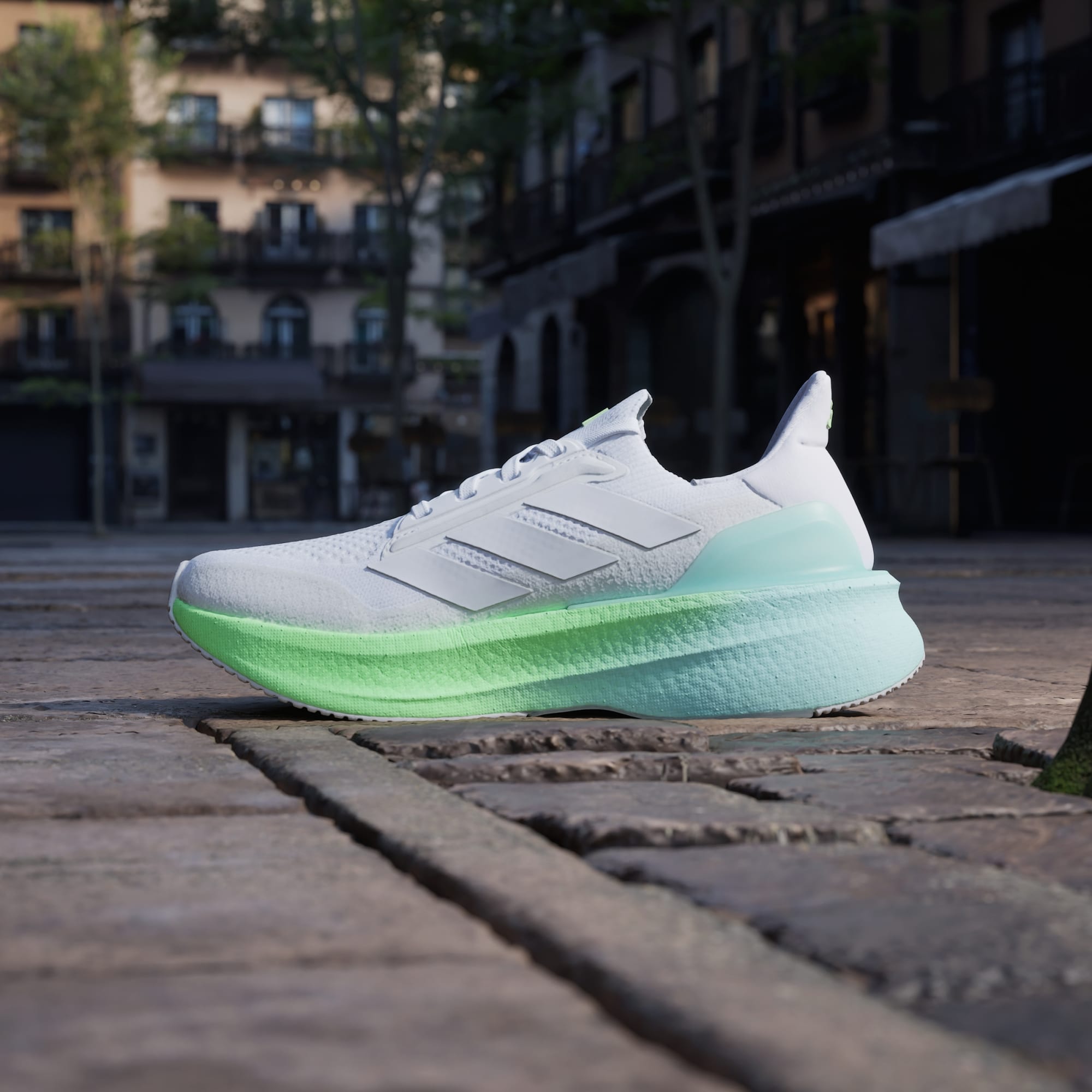 Une nouvelle génération de chaussures de running BOOST, conçue en partie avec des matières recyclées.