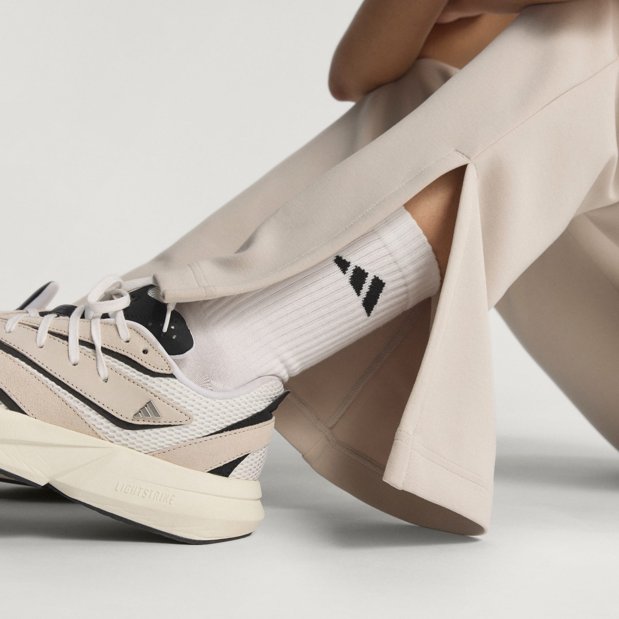 Ce pantalon évasé adidas est une référence casual chic. Le tissu peau de pêche doux te permet de rester à l'aise, tandis que la coupe slim, la taille mi-haute et les ourlets évasés créent une silhouette flatteuse. L’élastique intérieur assure un ajustement parfait et les encoches latérales ajoutent une touche stylée.
