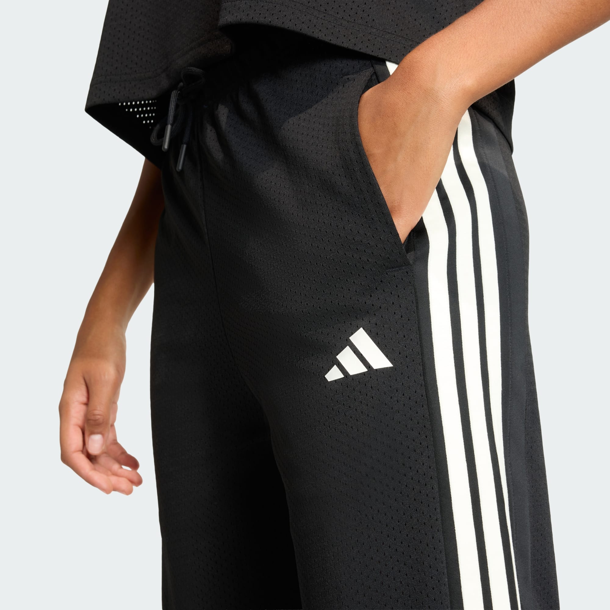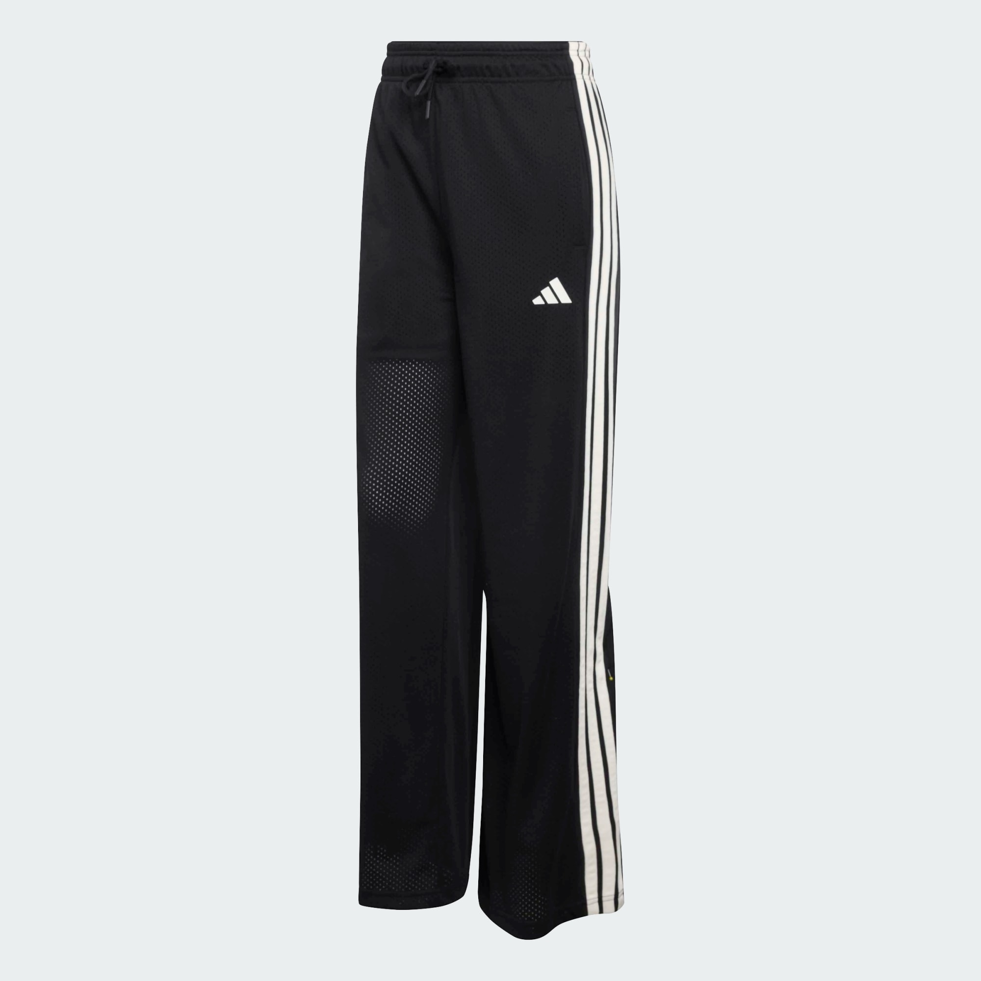 Découvre la mode d’inspiration sport avec le pantalon en mesh Stadium. Ce pantalon est conçu pour capturer l'essence de l'expérience des supporters, en célébrant la communauté et la passion qui unissent les amateurs de sport. Confectionné en mesh sport, il présente une coupe respirante et confortable parfaite pour les sorties décontractées. La taille haute avec un élastique apparent superposé le maintient bien en place et met en valeur ta silhouette. Les poches sur les côtés sont pratiques pour y glisser tes essentiels. Le pantalon est orné des emblématiques 3 bandes et du logo à 3 bandes, ajoutant une touche d'héritage adidas à ton look. Grâce aux boutons-pression sur les côtés des jambes, tu peux facilement varier de style. Que tu encourages ton équipe de football ou de basketball, ce pantalon honore la diversité des sports et l'esprit des stades.