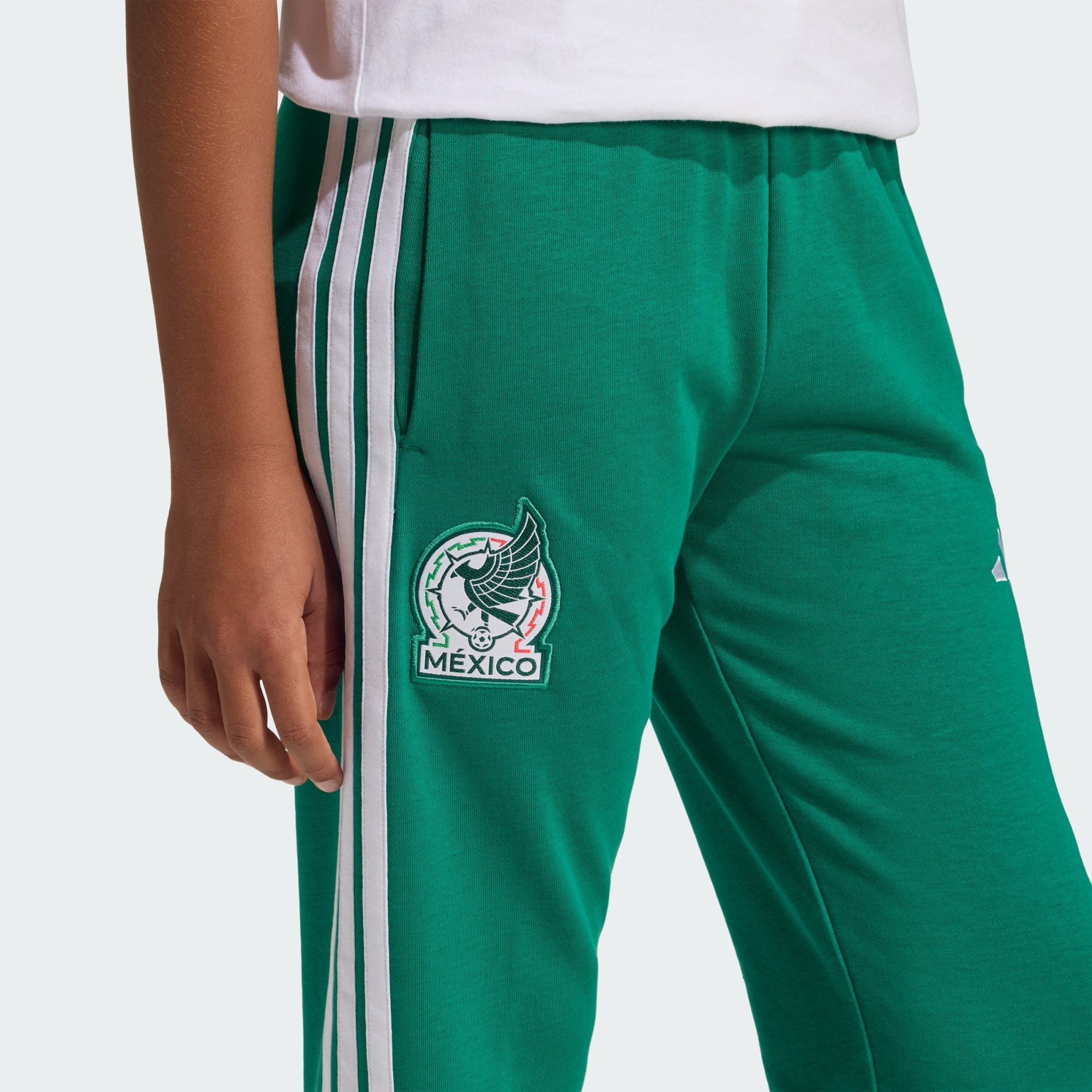 Le pantalon Mexique DNA affiche un look football casual et épuré d’inspiration sport. Conçu pour les jeunes fans, il revisite le style adidas classique. Le French terry doux offre une sensation de confort et bouge avec eux : parfait pour jouer ou encourager leur équipe. La taille entièrement élastique assure un maintien parfait sans restreindre les mouvements. Orné des 3 bandes et du logo adidas Performance, ce pantalon permet aux jeunes joueurs de montrer leur passion pour le ballon rond où qu'ils aillent avec des détails modernes.
