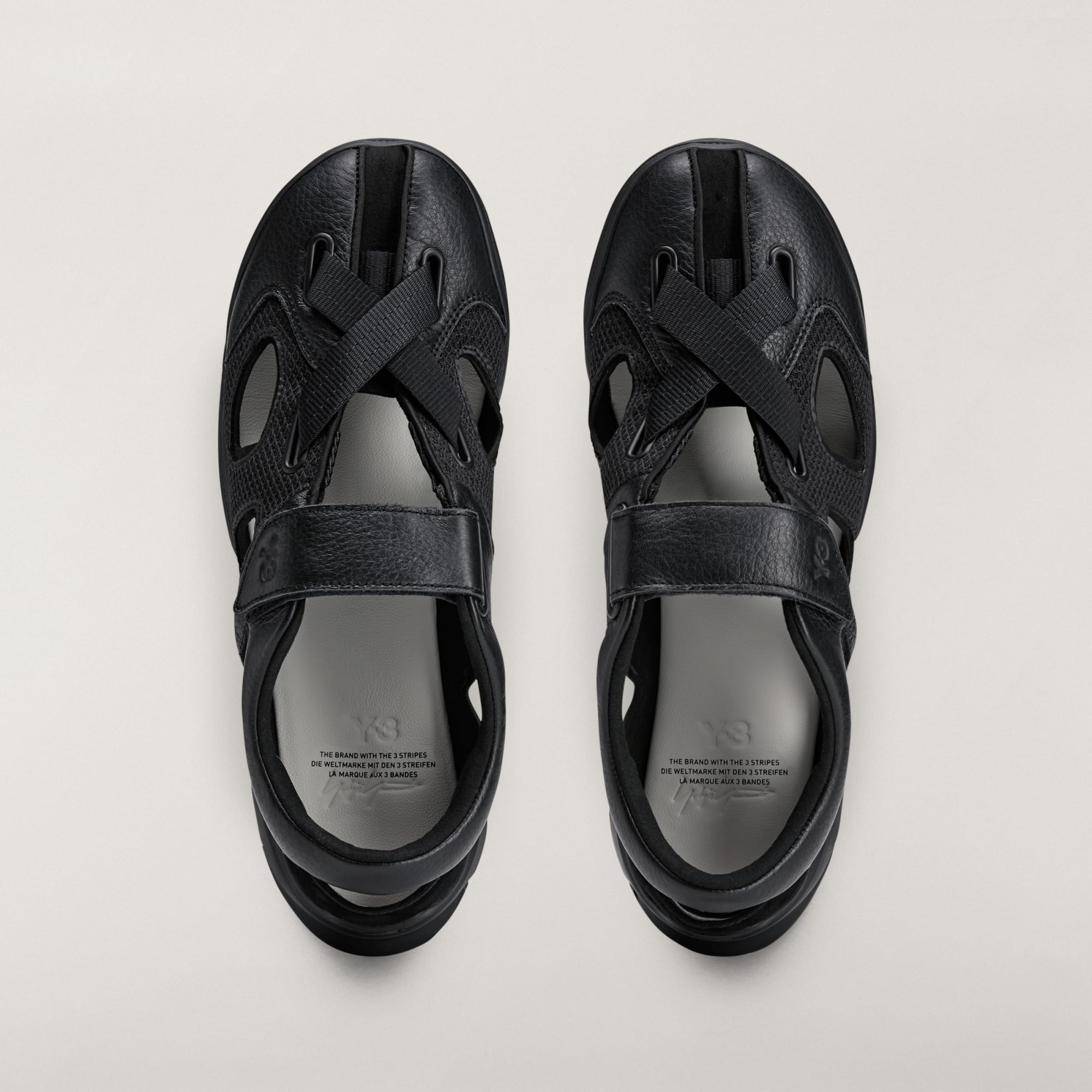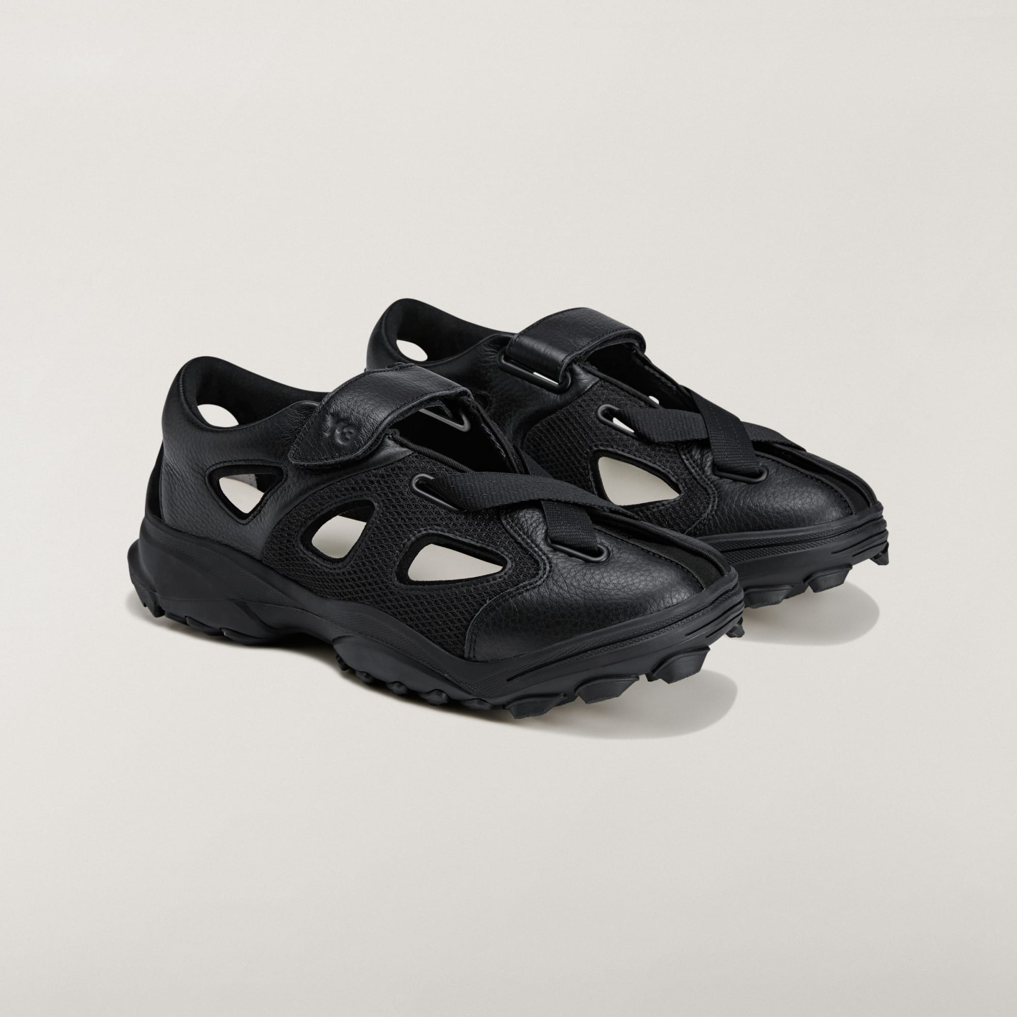 Les découpes offrent une bonne aération, tandis que la fermeture par bande auto-agrippante permet un accès facile et un maintien parfait. Le logo Y-3 sur la bride apporte la touche finale à ce modèle.