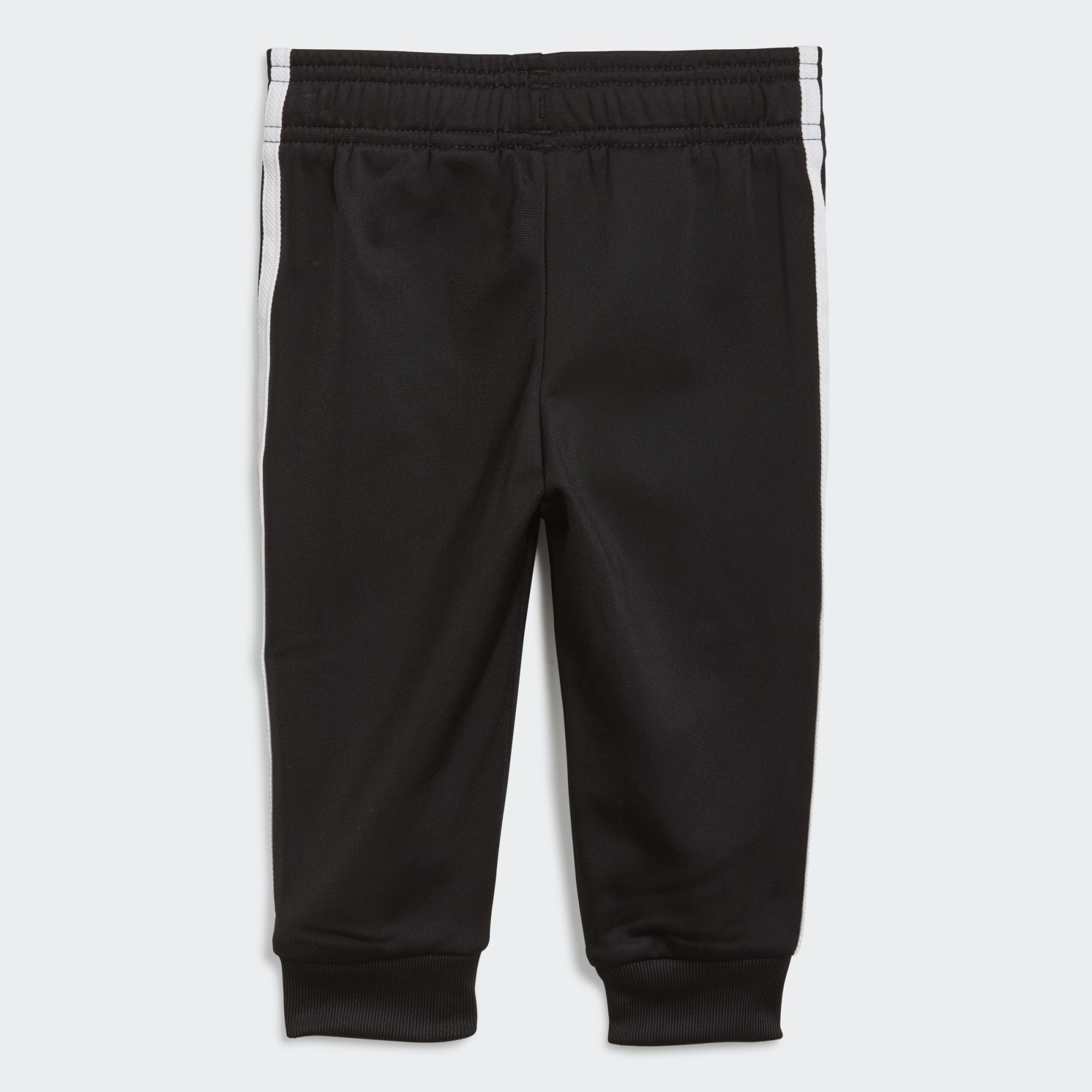 Appel à tous les futurs MVPs. Voici un survêtement bébés au look sporty gagnant. Les 3 bandes iconiques et le liseré font passer le style au niveau supérieur. La maille brillante signature apporte la touche finale.