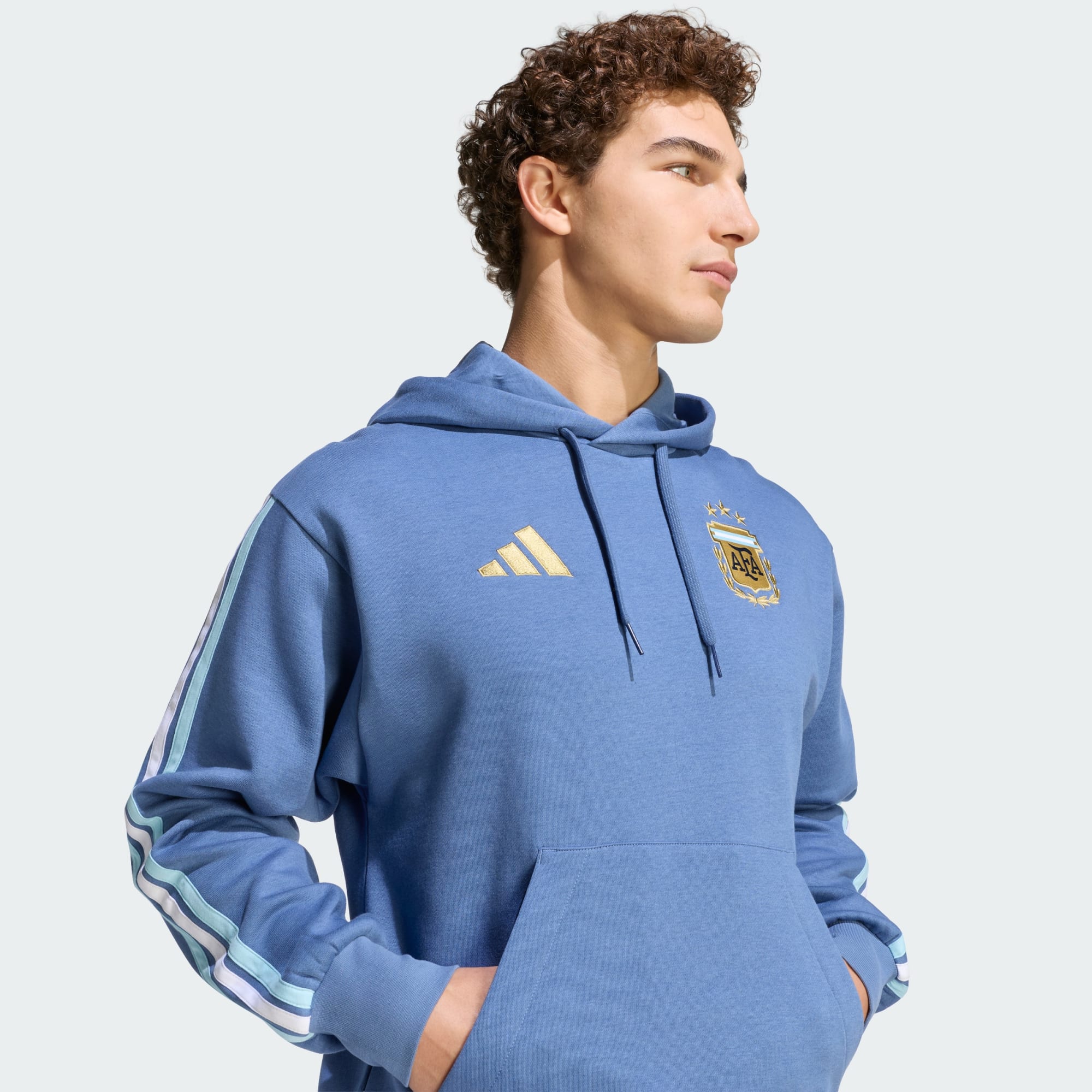 Le sweat-shirt à capuche en molleton Argentine DNA apporte une touche de look footballistique à tes tenues de tous les jours. Il est imaginé pour tous les fans qui adoptent l’esprit du jeu au-delà du terrain, avec un côté épuré et moderne. Le molleton tout doux offre chaleur et confort, tandis que la coupe standard et la capuche ajustable te permettent de le porter avec aise pendant les journées plus fraîches. Le logo remis au goût du jour et le motif classique à 3 bandes sont un petit clin d’œil à l’ADN sportif d’adidas. Des rituels d’avant-match aux moments de détente, ce hoodie met le football au centre de l’attention, en toute élégance et discrétion. Look assuré, confortable, et résolument ancré dans les temps modernes.