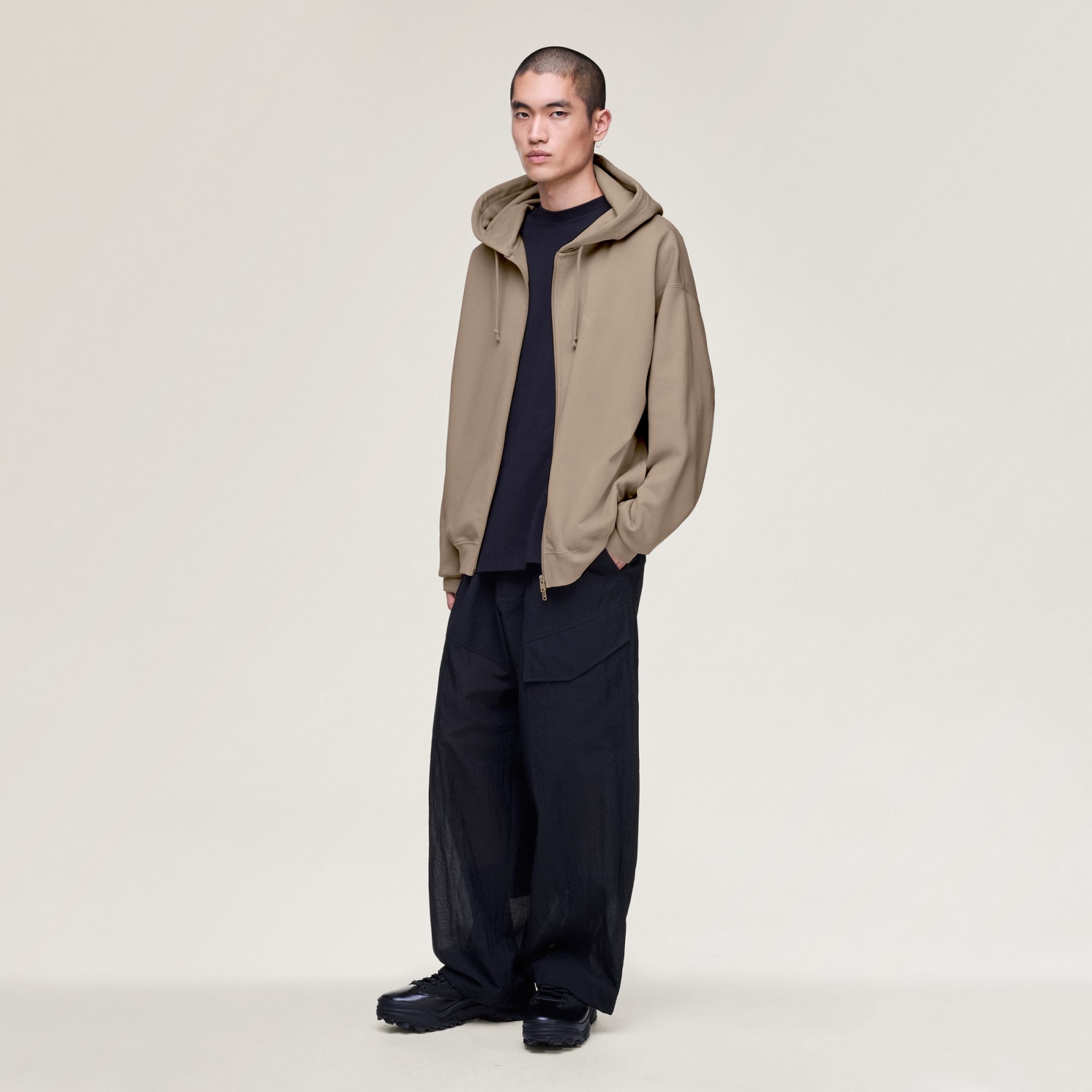 - Zip sur toute la longueur, capuche