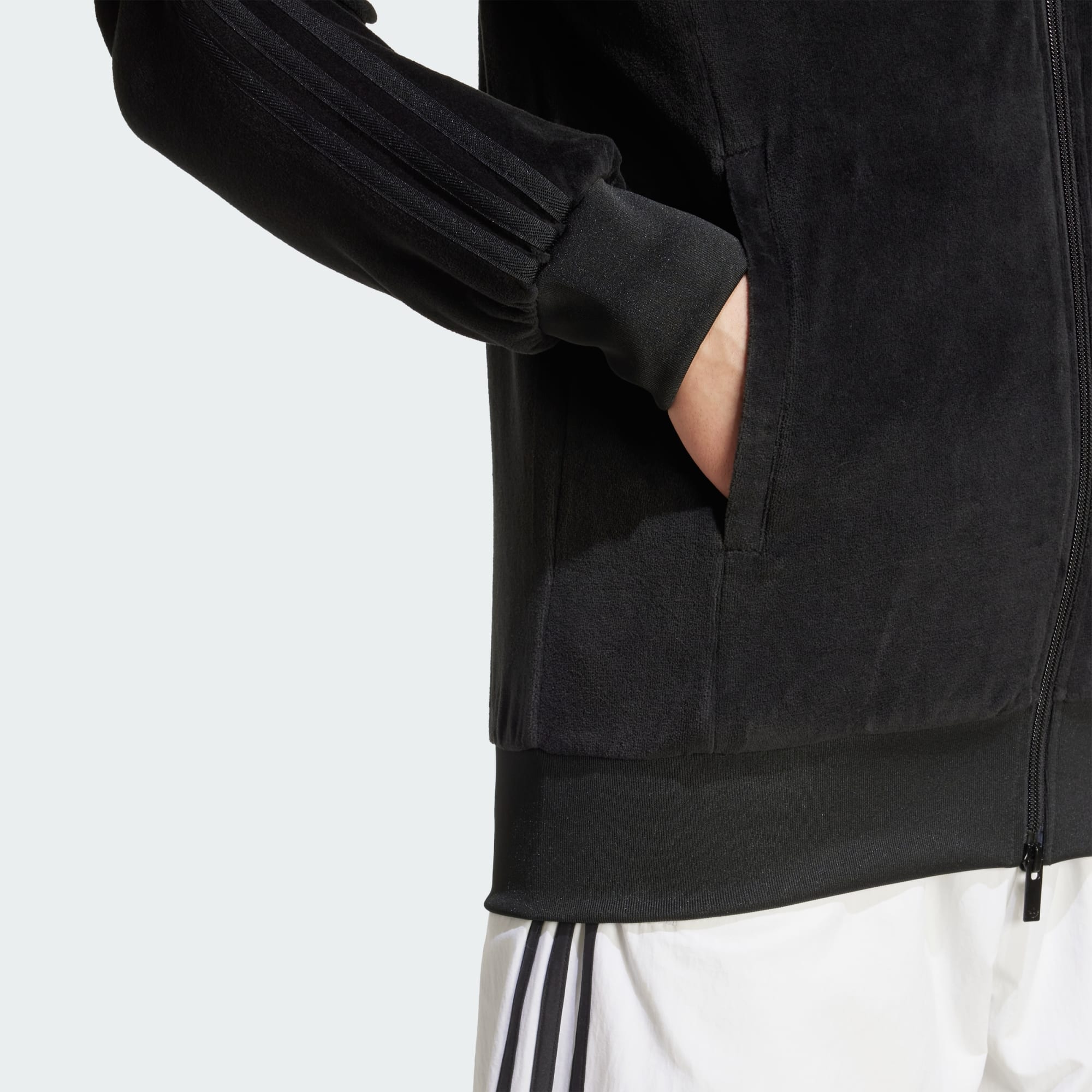 Que tu te prélasses à la maison ou que tu sortes en ville, ce haut de survêtement adidas est là pour toi. Le velours moelleux lui donne une sensation de luxe. Avec un col et des poignets côtelés et une coupe ajustée qui épouse le corps, il est conçu pour être aussi élégant que confortable.