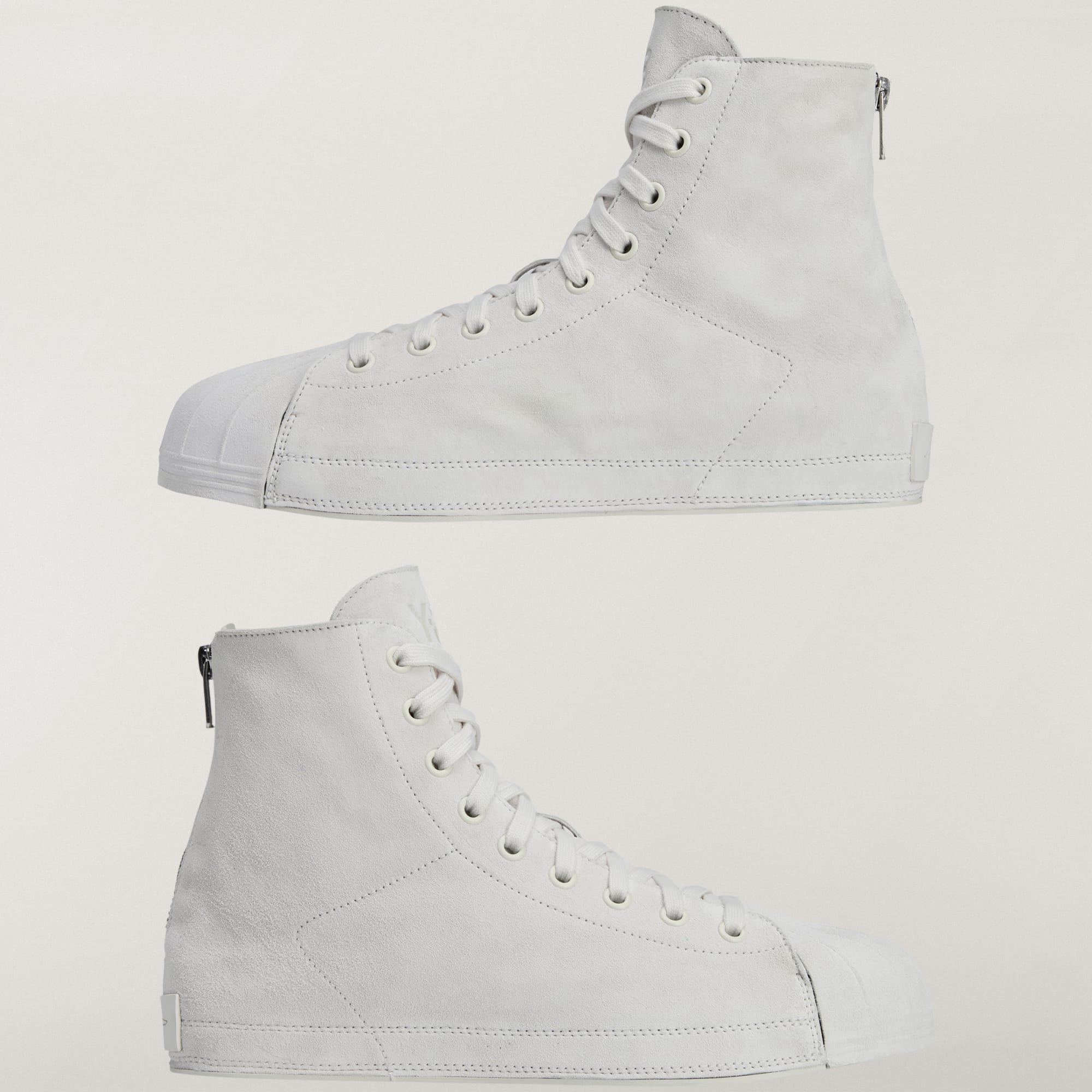 Cette chaussure célèbre la rencontre de deux univers : celui des modèles adidas Superstar et celui du modèle Nizza. Basé sur la même construction de semelle intermédiaire avant-gardiste que la Y-3 NIZZA, ce modèle montant est réalisé avec une tige en suède qui s'étend jusqu'à la semelle extérieure et qui comprend le shell-toe emblématique de la chaussure adidas Superstar. Il en résulte un look distinctif, mais extrêmement minimaliste. En plus de cela, la chaussure présente une fermeture zippée au talon pour l’enfiler facilement. Elle est ornée d'un logo Y-3 sur la languette et d'une signature de Yohji Yamamoto sur le patch au talon.